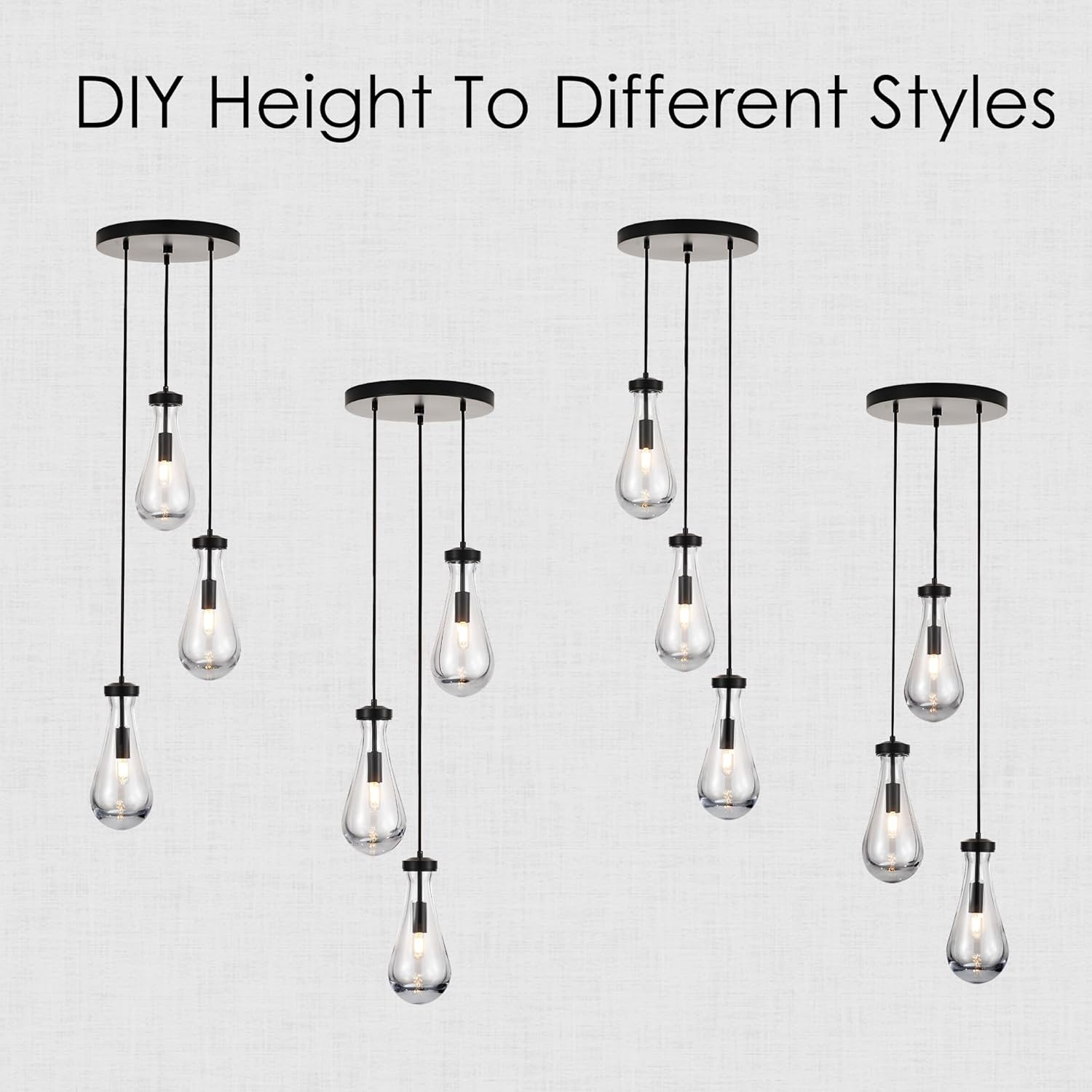 3-Light Raindrop Pendant Light Fixtures, Black Glass Pendant Lighting, Teardrops Modern Hanging Light for Entryway Foyer Kitchen Island Dining Living Room Hallway