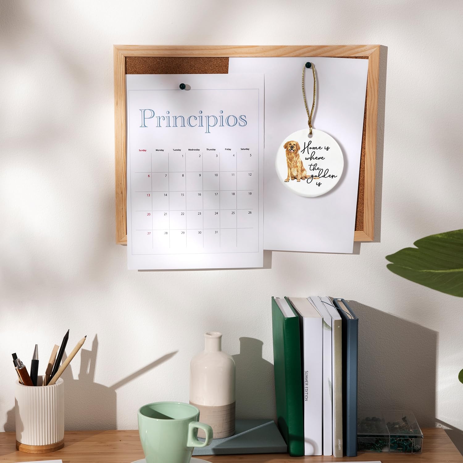 Golden Retriever Decor Gifts Ornament, Home is Where The Golden is Ceramic Christmas Ornament Keepsake Sign Plaque