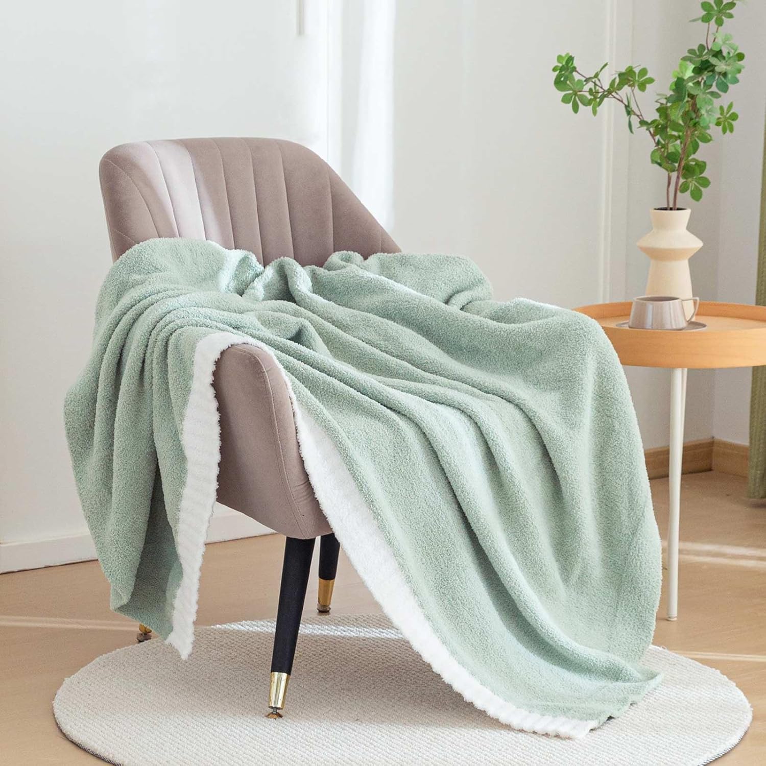 Soft Fuzzy Throw Blanket - Green Cozy Warm Knit Fluffy Plush, Lightweight & Breathable, Throw for Bed, Chair, Sofa, Couch, Outdoor, 60"X80", Oeko-TEX Certified