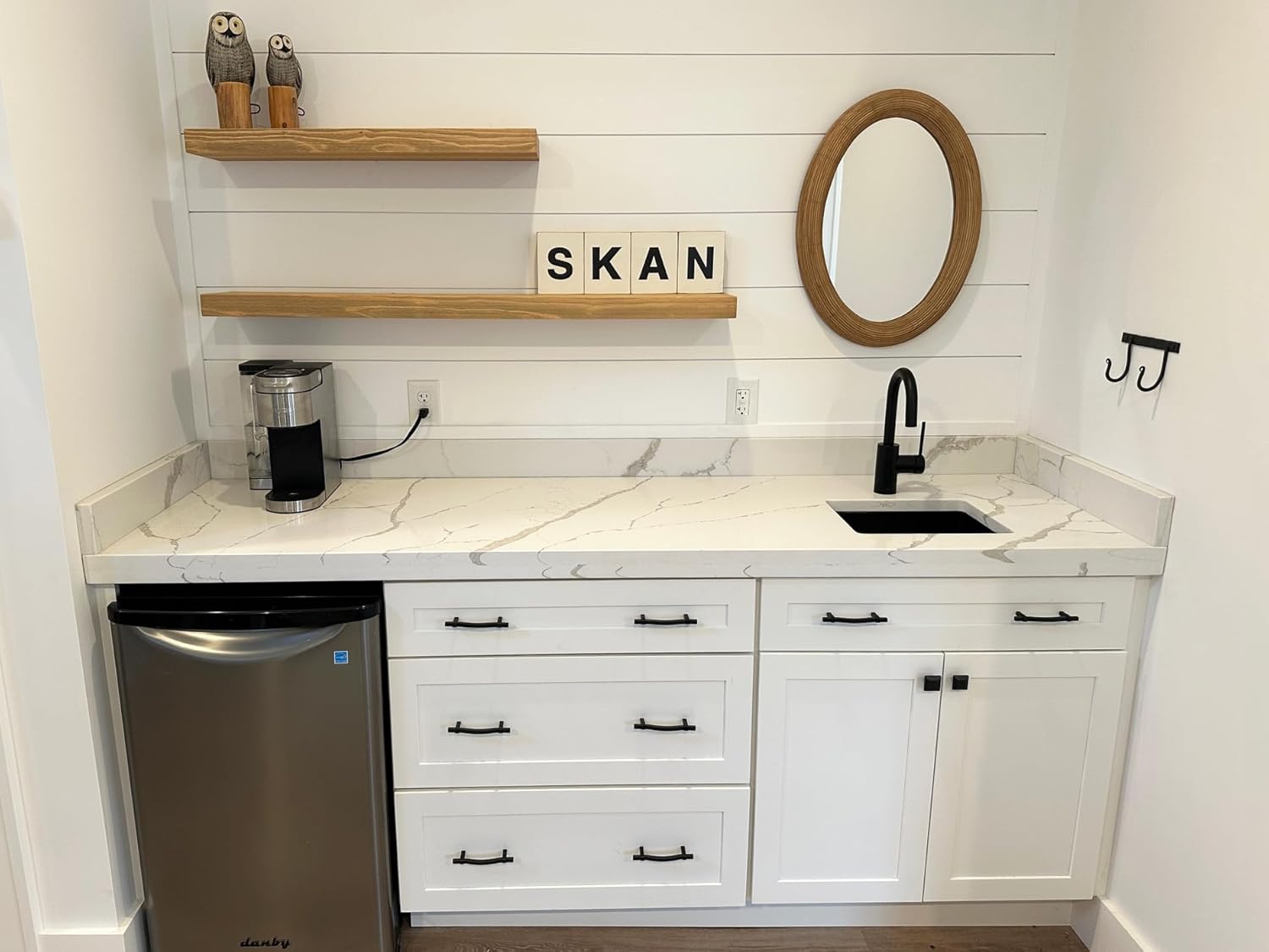 - Effortless Installation: Say goodbye to complicated setups. Our patented wood stud mounting system makes installing these rustic floating shelves a breeze. With pre-drilled holes and included hardware, you'll have your new shelves up in no time.