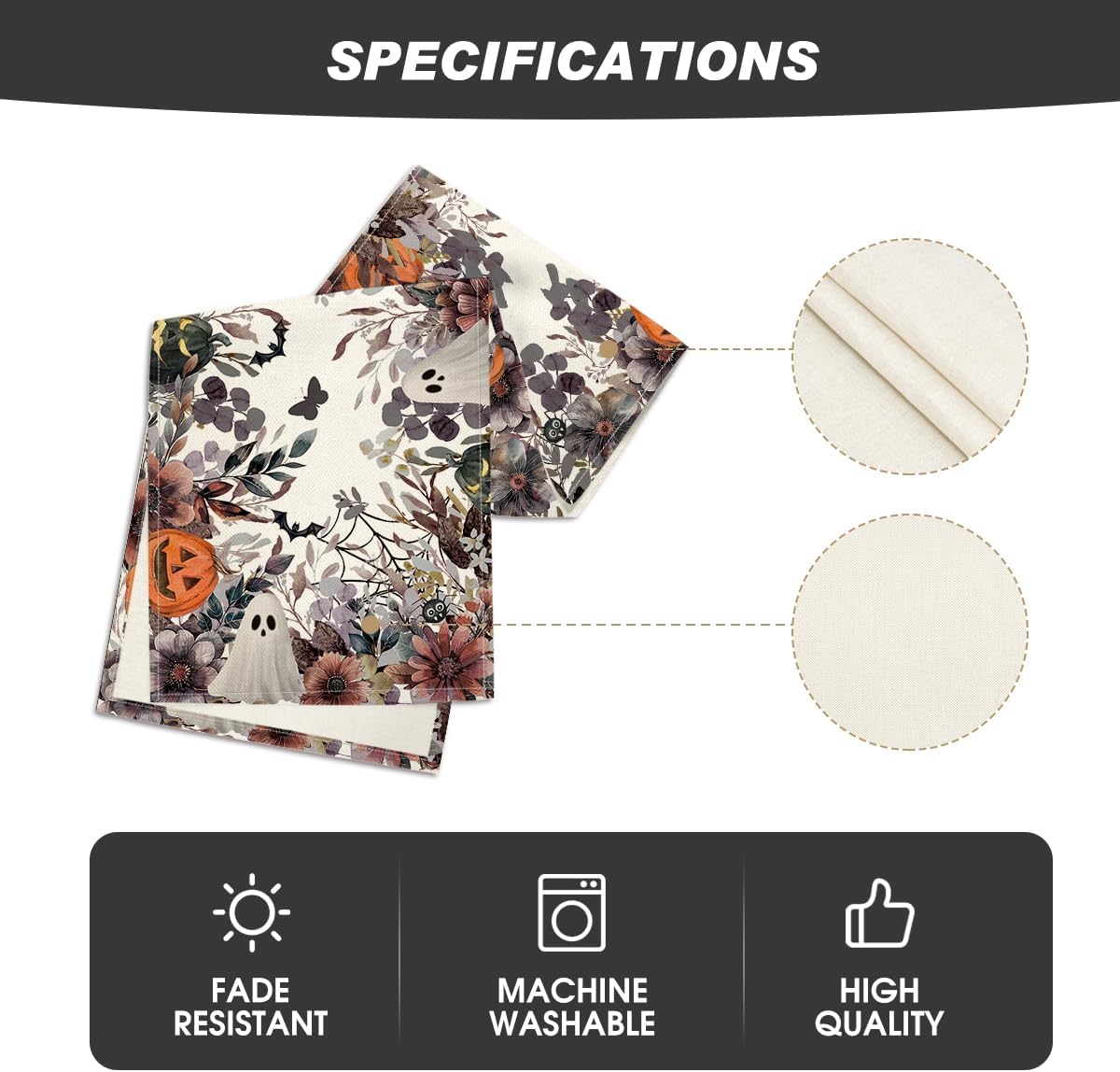 Artoid Mode Jack-O'-Lantern Pumpkin Floral Ghost Halloween Table Runner, Eucalyptus Kitchen Dining Table Decoration for Home Party Decor 13x48 Inch