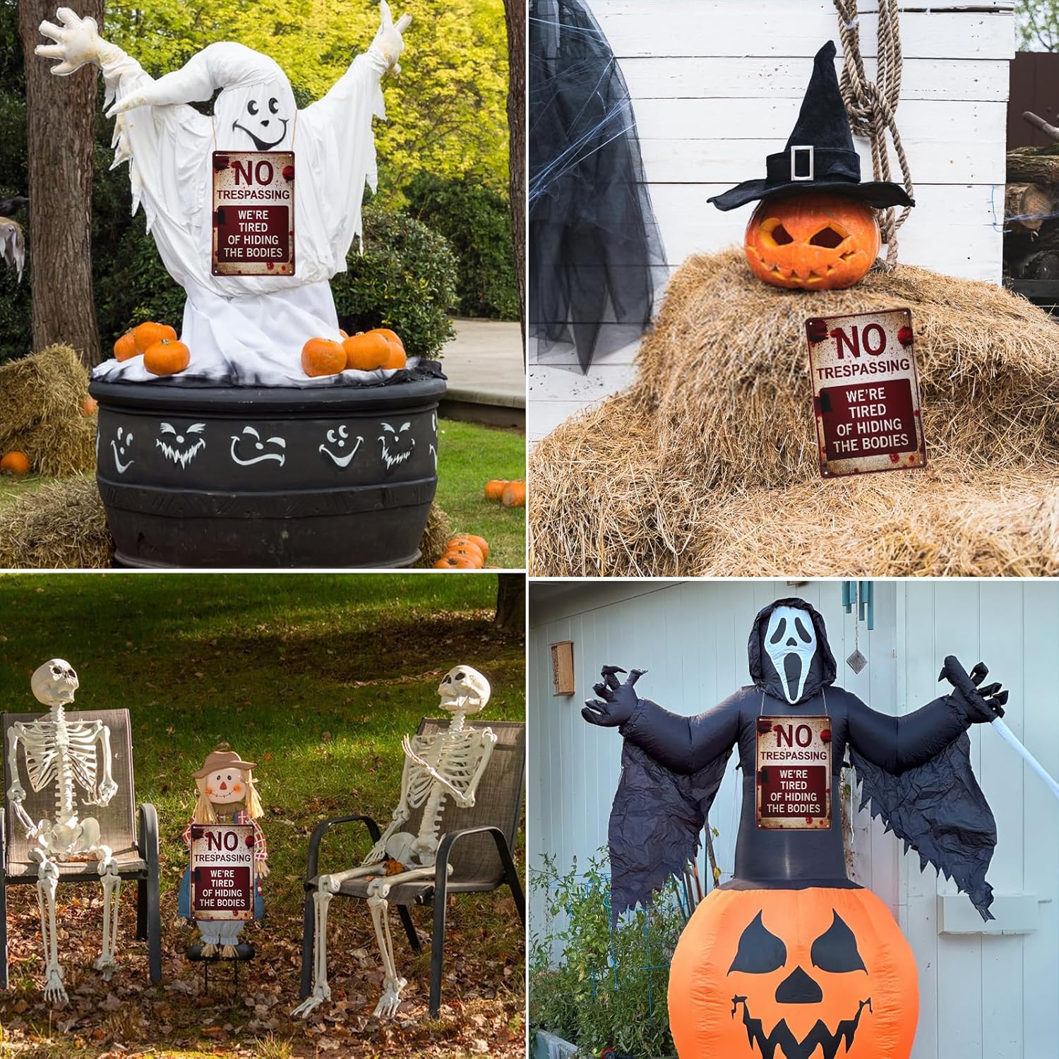 - High Quality: No trespassing signs funny feature durable rust free aluminum; waterproof dust proof and fade resistant UV printing; suitable for indoor and outdoor Halloween home decor