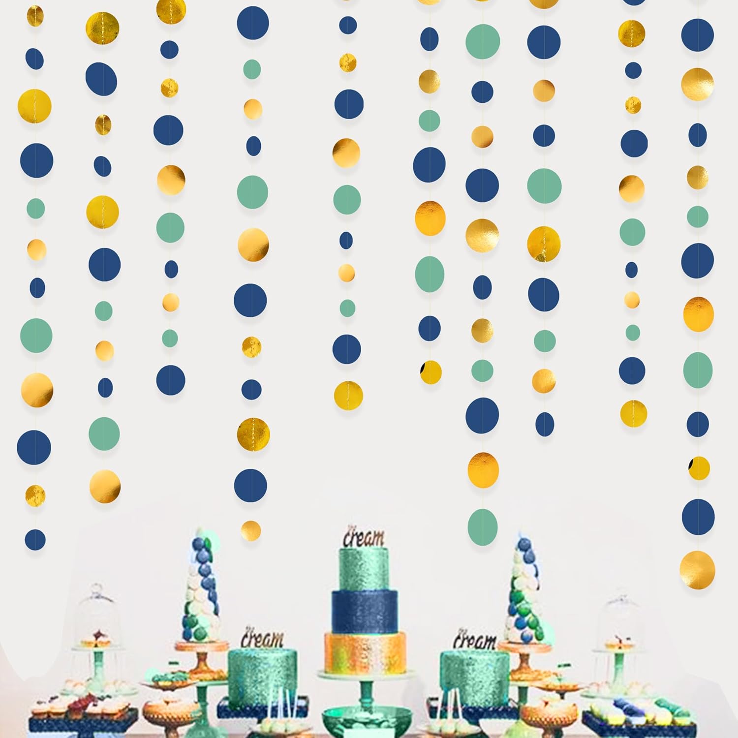 - Environmental Material-Our blue gold and green color dot garland are made of high quality card stock and metallic gold paper,carefully hand-made then machine-sewn together with thread.durable and reusable.