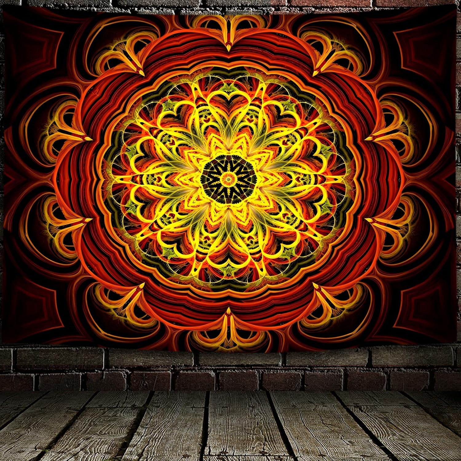 Blacklight Mandala Tapestry Wall Hanging, Psychedelic Black Light Posters for Adults and Teens, UV Reactive Aesthetic Golden Art for Bedroom (60 x 50 Inches)