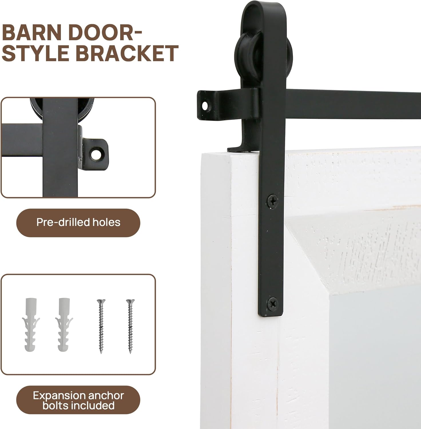 - 【Premium Solid Wood Frame】The frame of the farmhouse mirror is made of premium fir wood with oil-based paint to prevent scratches and ensure durability and resistance to moisture. The solid wood frame gives the rustic mirror a sturdy and authentic look, adding a touch of farmhouse appeal to the bathroom, living room, powder room, entryway, hallways, bedroom, dressing room, garden, courtyard, etc.