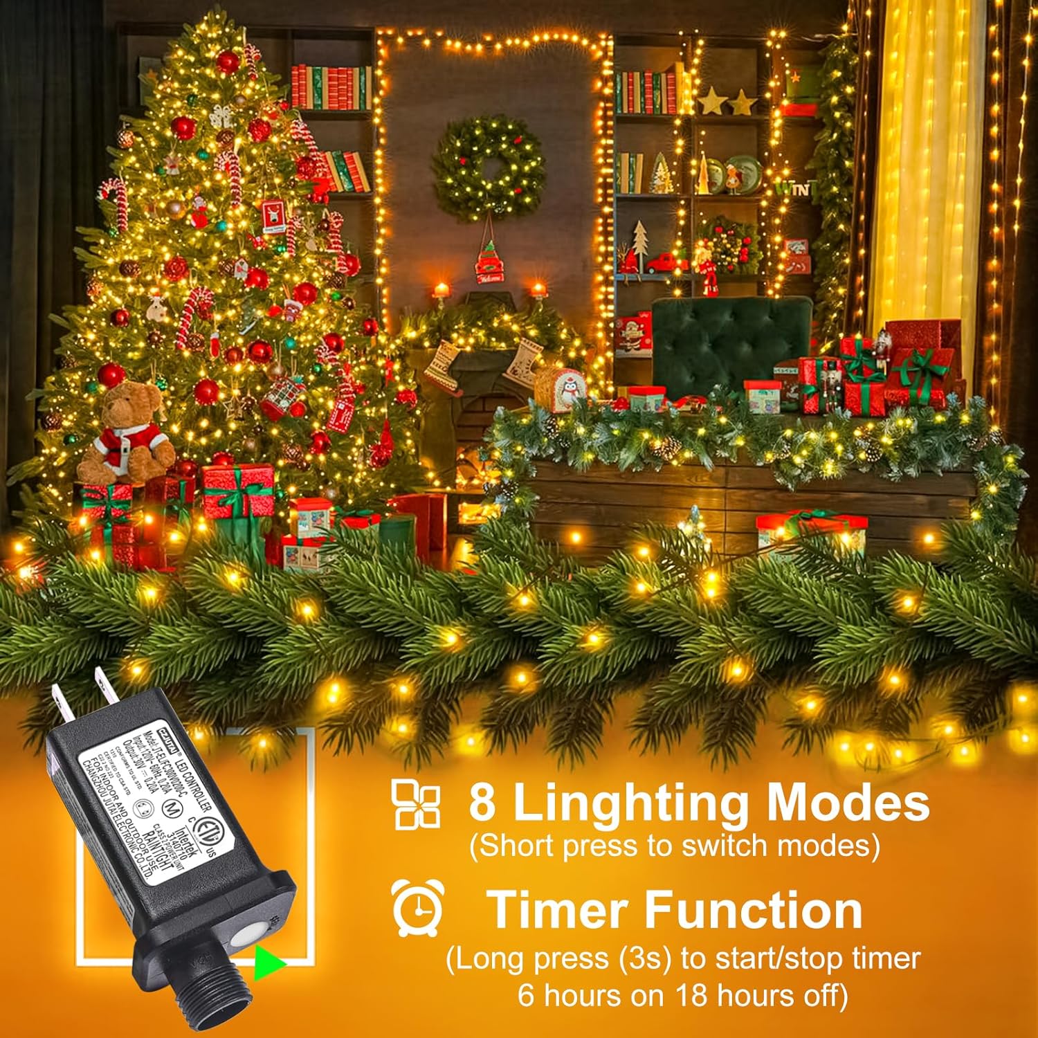 - 【8 Lighting Modes】: This warm white string lights has 8 different lighting modes to choose from: combination, in waves, sequential, slog-glo, chasing/flash, slow fade, twinkle/flash, steady on. Press the button on the adapter to change the flashing modes. Moreover, built-in memory chip will save your last mode setting.