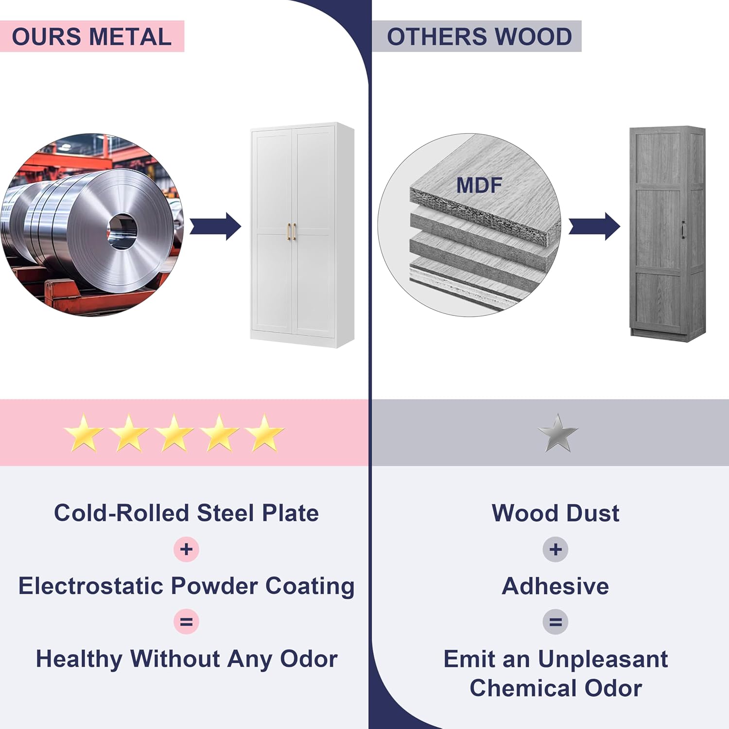- MATERIAL: The kitchen food storage cabinet is crafted from cold-rolled steel plate(SPCC), ensuring it is sturdy and durable. Steel plates are covered with an environmentally friendly powder coating. Compared to traditional wooden or plastic cabinets, UNICOLY kitchen food storage cabinets are corrosion-resistant, easy to clean, and odourless