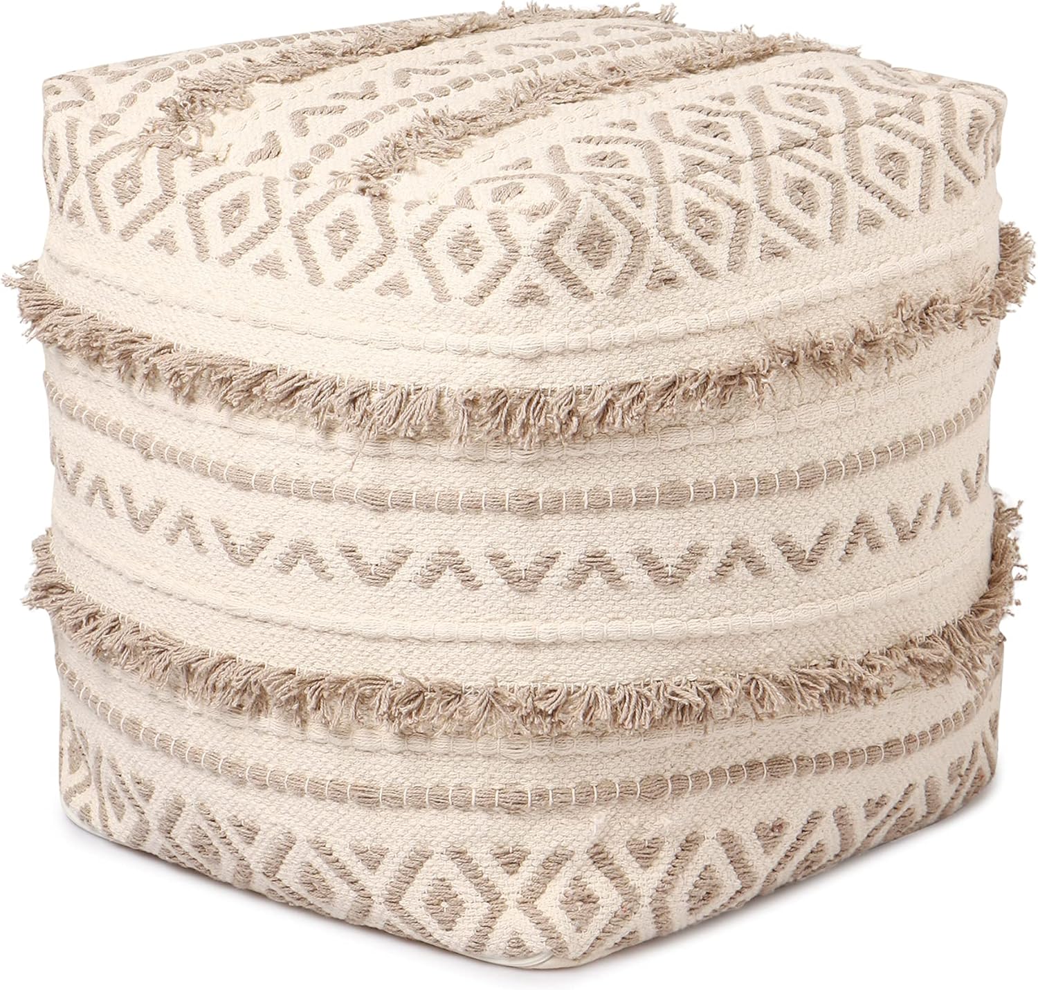 REDEARTH · Tufted Pouf Ottoman with Filler Textured Storage Cube Bean Bag Pouffe Footrest for Living Room, Bedroom, Nursery, Kidsroom; 100% Cotton (17.5"X17.5"X17.5", Geometric Craft Taupe)