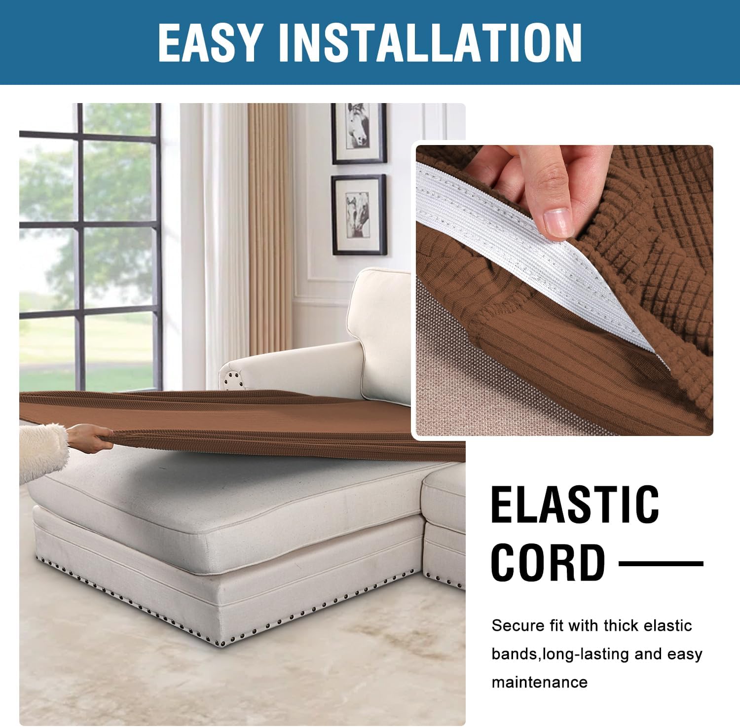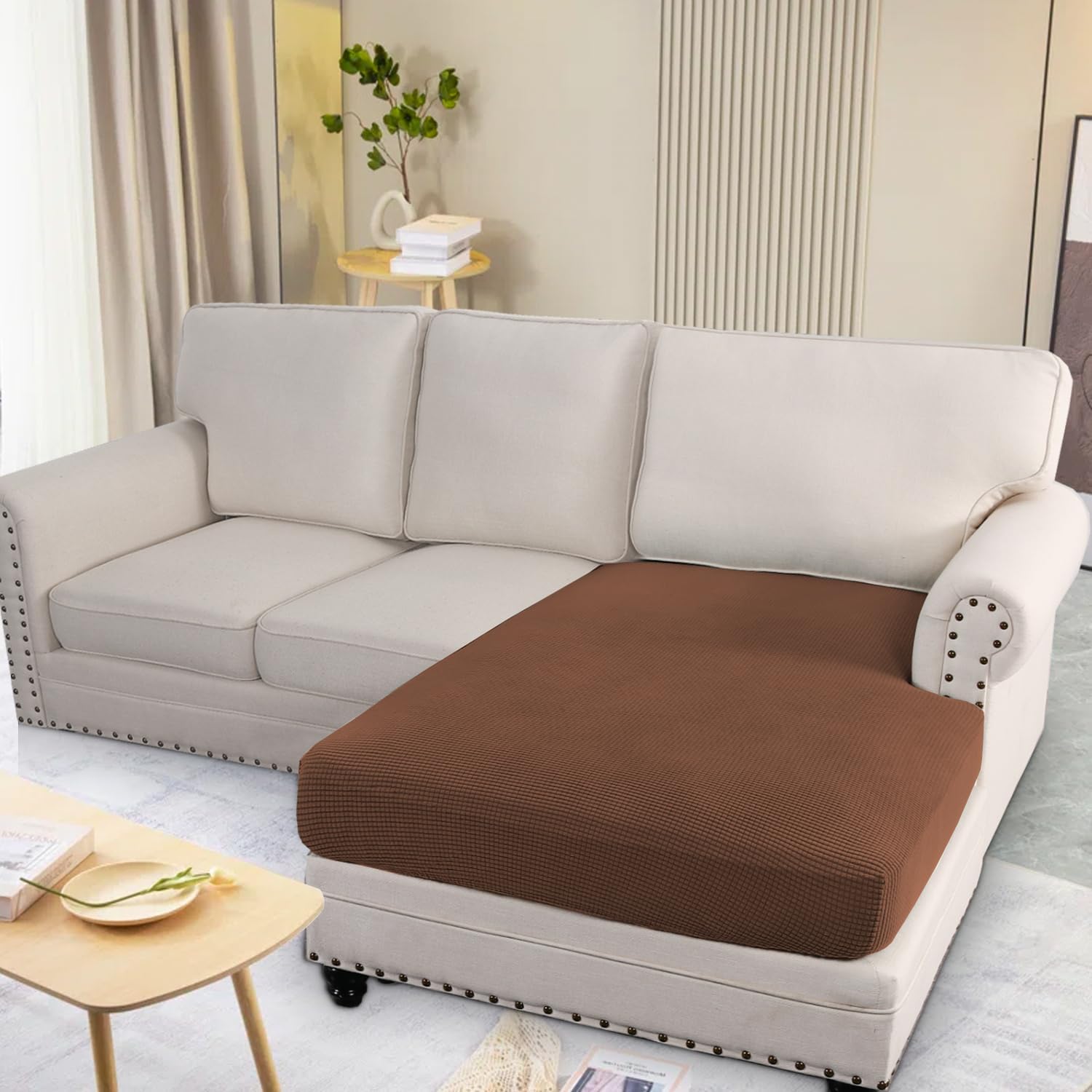 - GREAT FIT: Set of 1. This innovated cushion slipcover is crafted from durable and soft high stretch knitted jacquard fabric. Chaise Lounge Cover for Both Left/Right L Shaped Couch(fits up to 33-37 inch width, 55-61 inch depth, 3-8 inch thickness). Feature one-size-fits-most, kindly measure before ordering