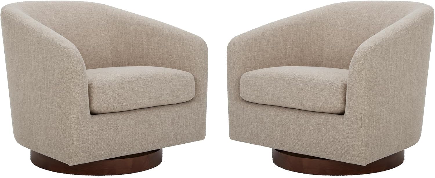 CHITA Swivel Accent Chair, FSC Certified Upholstered Fabric Barrel Chair for Living Room Set of 2, Fully Assembled, Flax Beige