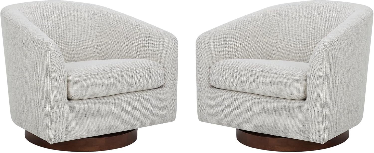CHITA Swivel Accent Chair, FSC Certified Upholstered Fabric Barrel Chair for Living Room Set of 2, Fully Assembled, Ivory