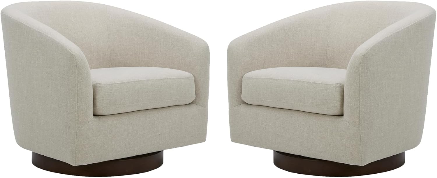 CHITA Swivel Accent Chair, FSC Certified Upholstered Fabric Barrel Chair for Living Room Set of 2, Fully Assembled, Linen
