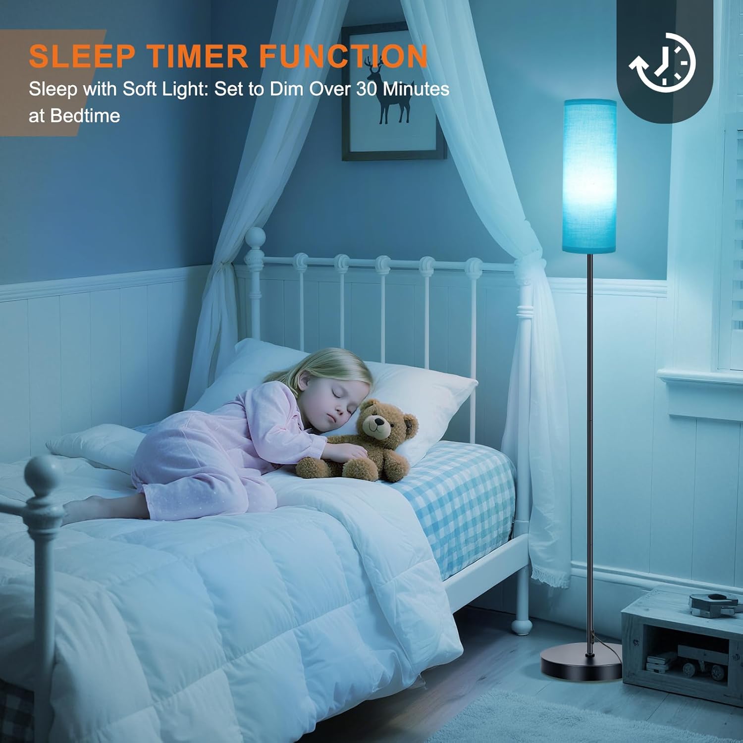 - 【Dynamic RGB Mode】To use this RGB floor lamp, start by turning it on with the foot switch. After that, you can control it with either a remote (Battery not included)or a smartphone app. The bedroom floor lamp offers 16 million colors to choose from, and you can easily adjust the brightness and color modes. The floor lamps for living room also includes a 30-minute timer feature,which you can set using the remote(Battery not included) or the app. (PS:App isn’t compatible with Alexa)