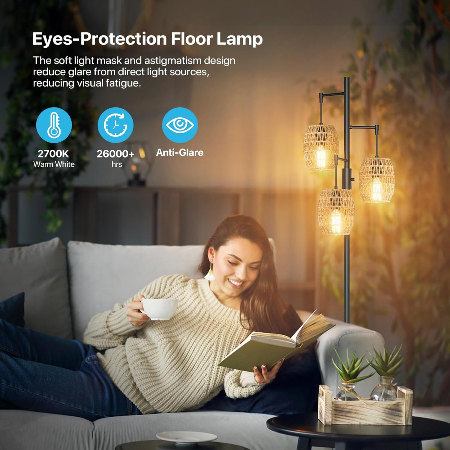 - 3 LED High-Efficiency Bulbs Included & Easy Assembly - This 70 inch floor lamp is equipped with 3 E26 UL sockets and 3PCS bulbs, compatible with LED, CFI, incandescent, tungsten and halogen bulbs. And boho lamps for bedroom can be easily assembled without any tools, you just need to screw all the parts together and follow the instructions.