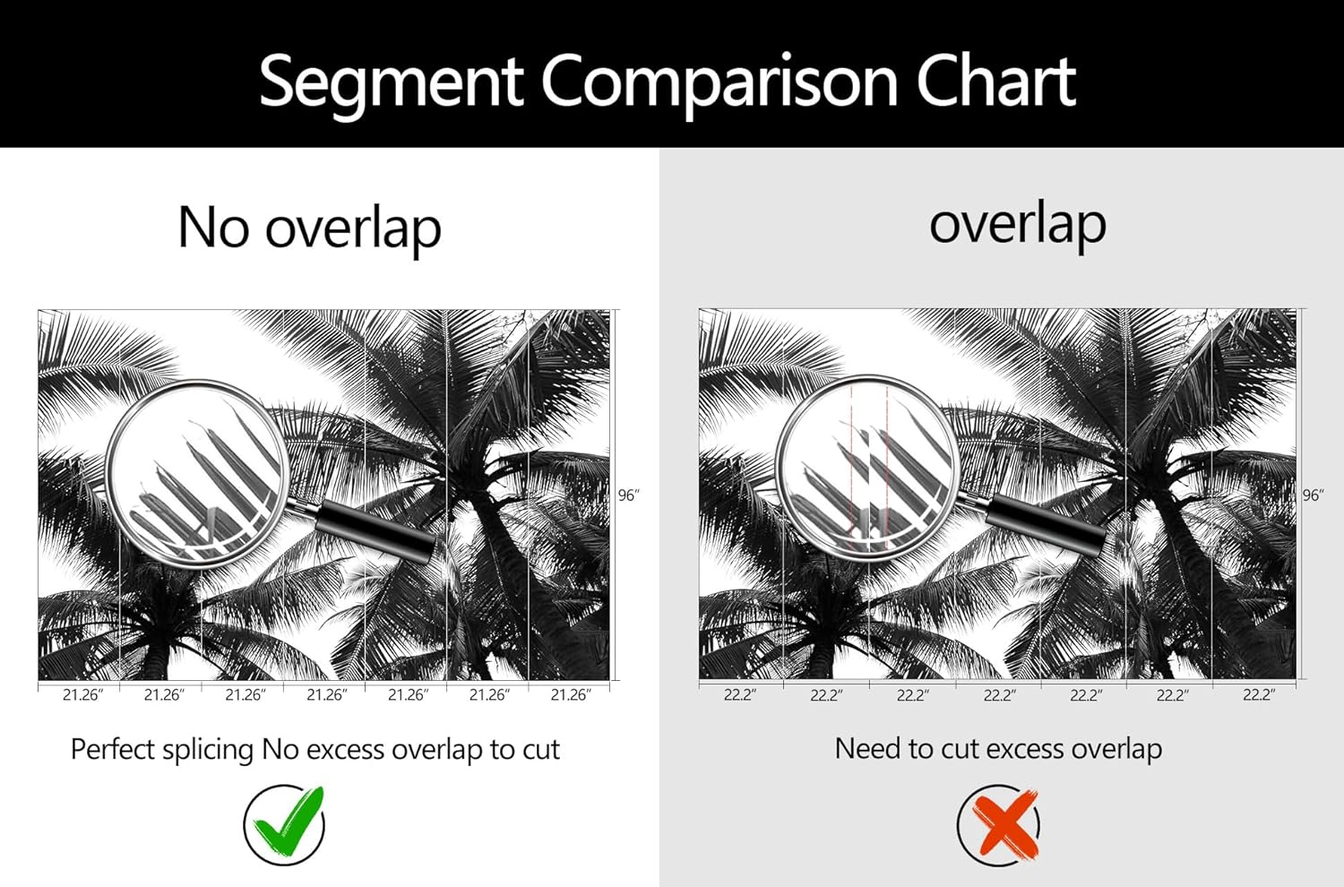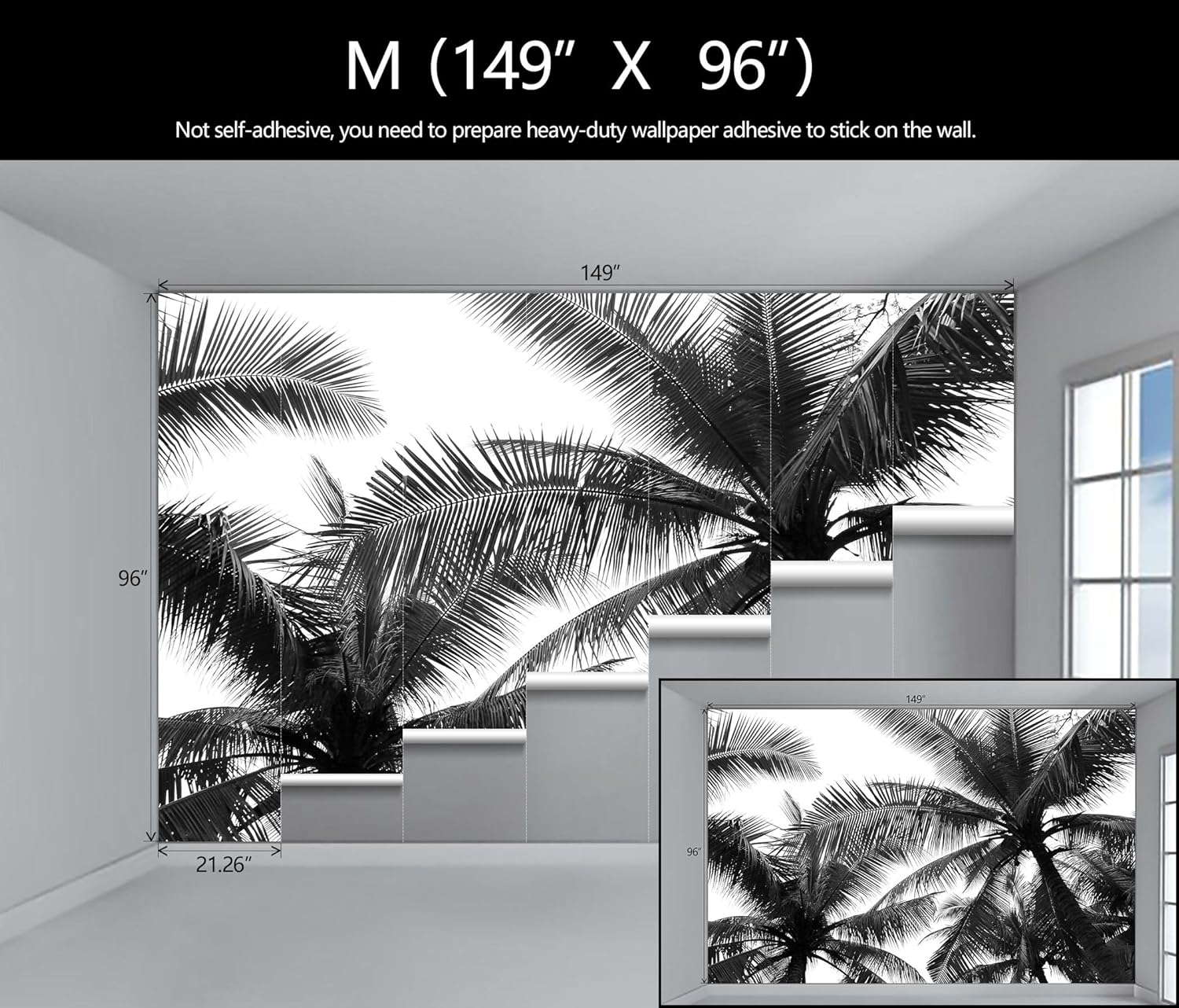 - Mural Size: The total size of this mural wallpaper is 149" x 96" / 378CM x 244CM (W x H), cut into 7 pieces, each measuring 21.26" x 96", for easy installation.