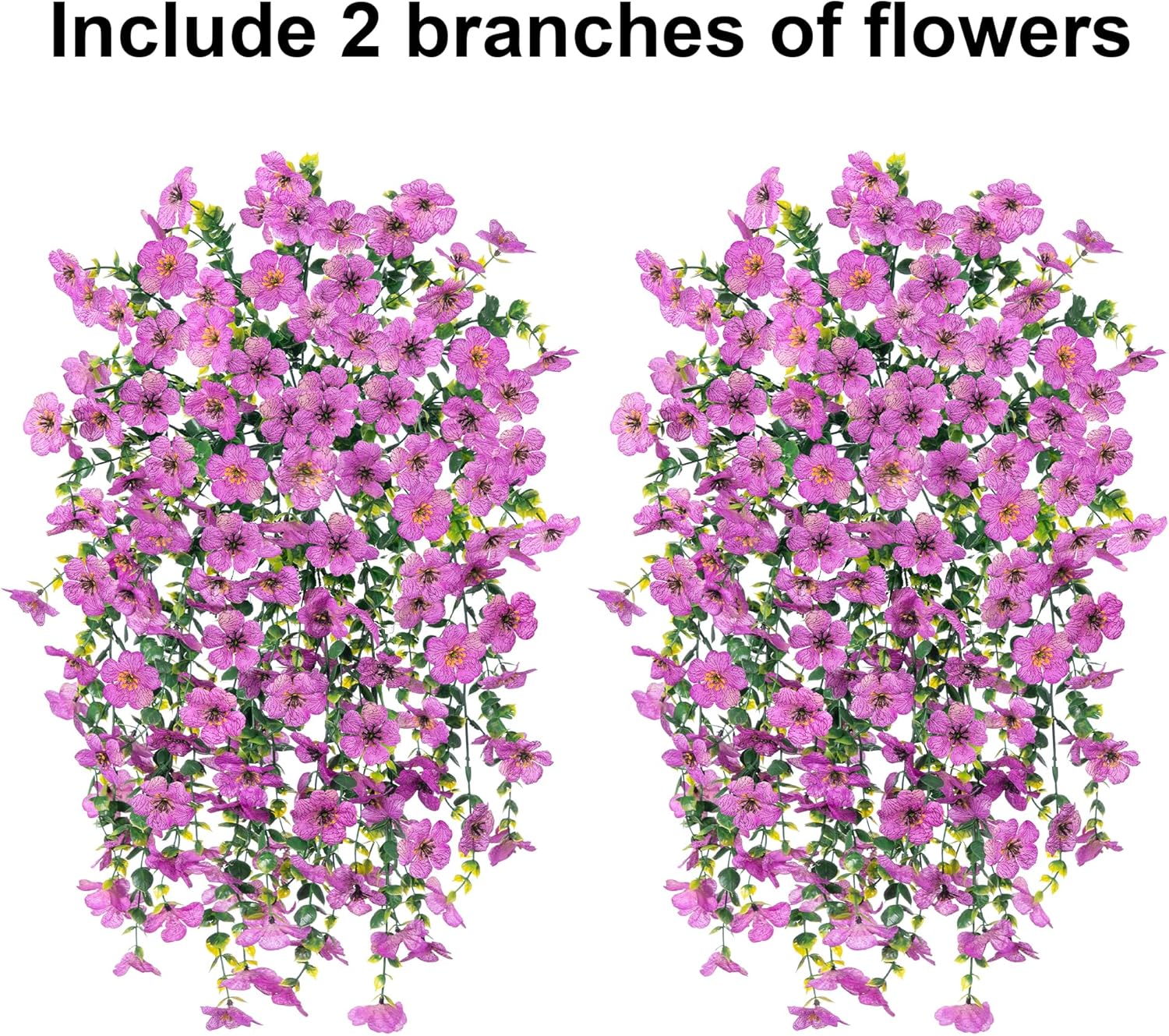 - Artificial Hanging Flowers: Package include 2 bundles artificial violets with eucalyptus trailing flower Vines. Our artificial flowers are perfect for any space. They are also perfect choice for spring indoor and outdoor decorations.