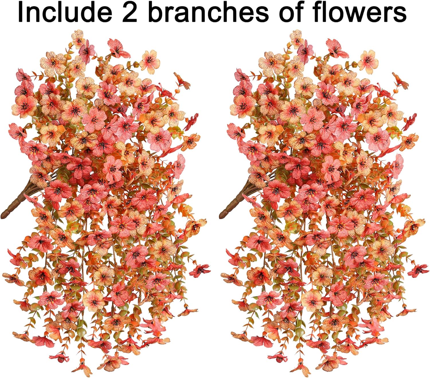 - Package include: 2 bundles artificial mums for outdooors with eucalyptus trailing Vins. Our artificial flowers are perfect for any space. They are also perfect choice for fall indoor and outdoor decorations.