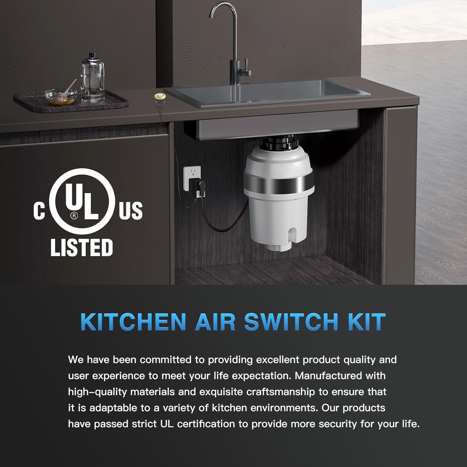 - 【SAFETY AND SECURITY】Our garbage disposal air switch kit has obtained UL certification, which not only covers the power cord but also fully recognizes the overall safety performance. It is made of high-strength and corrosion-resistant materials, ensuring safety and durability while completely eliminating your concerns about potential damage or safety risks.