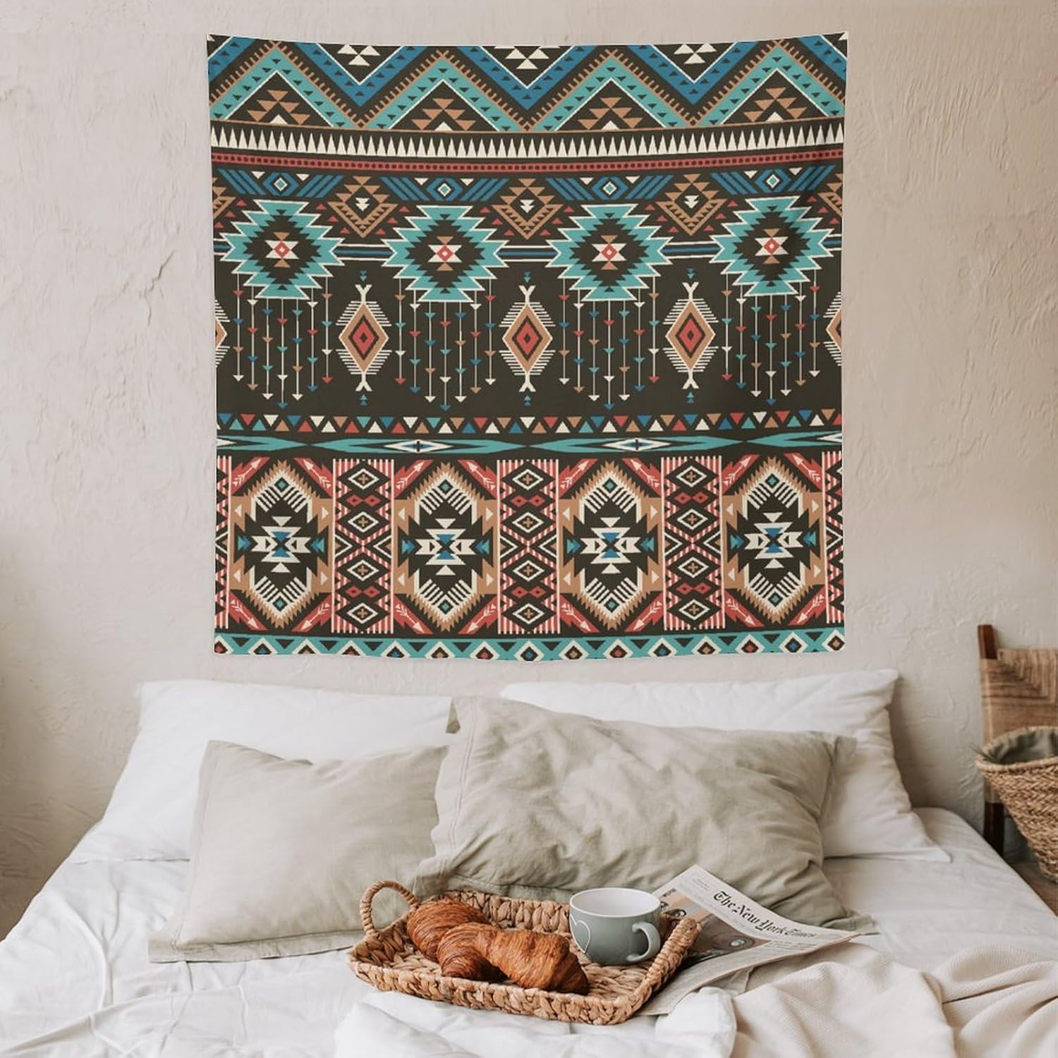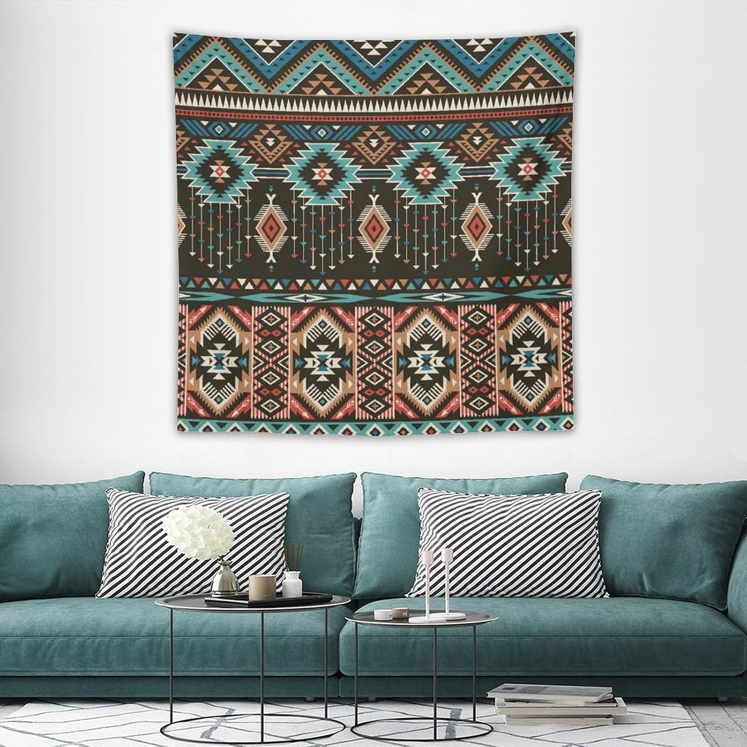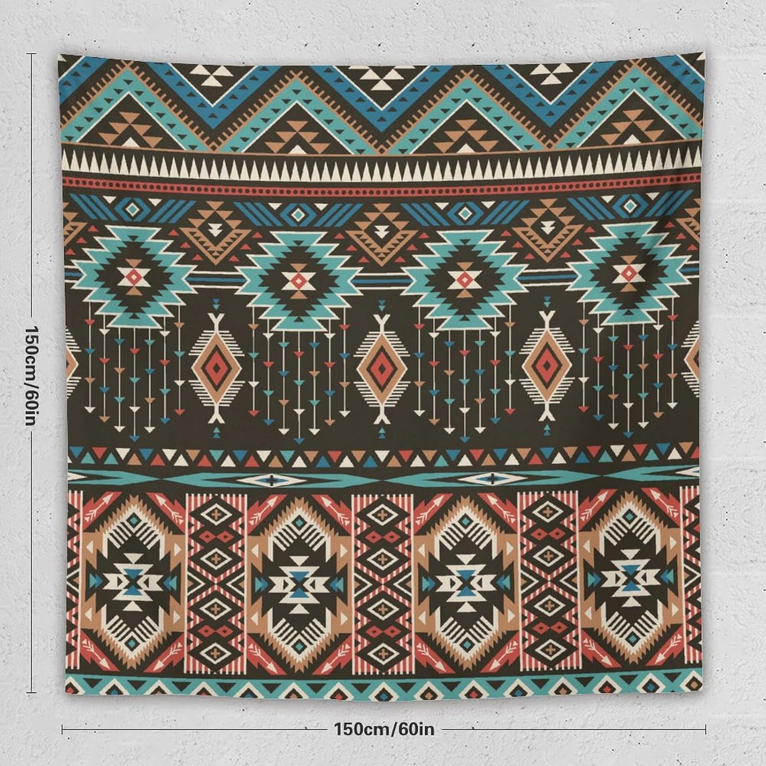 HZOHNAGO Aztec Tapestry Turquoise Blue and Brown and Native American Tribal Pattern Printed Wall Tapestry Wall Hanging for Bedroom Living Room Dorm 60" W x 60" H
