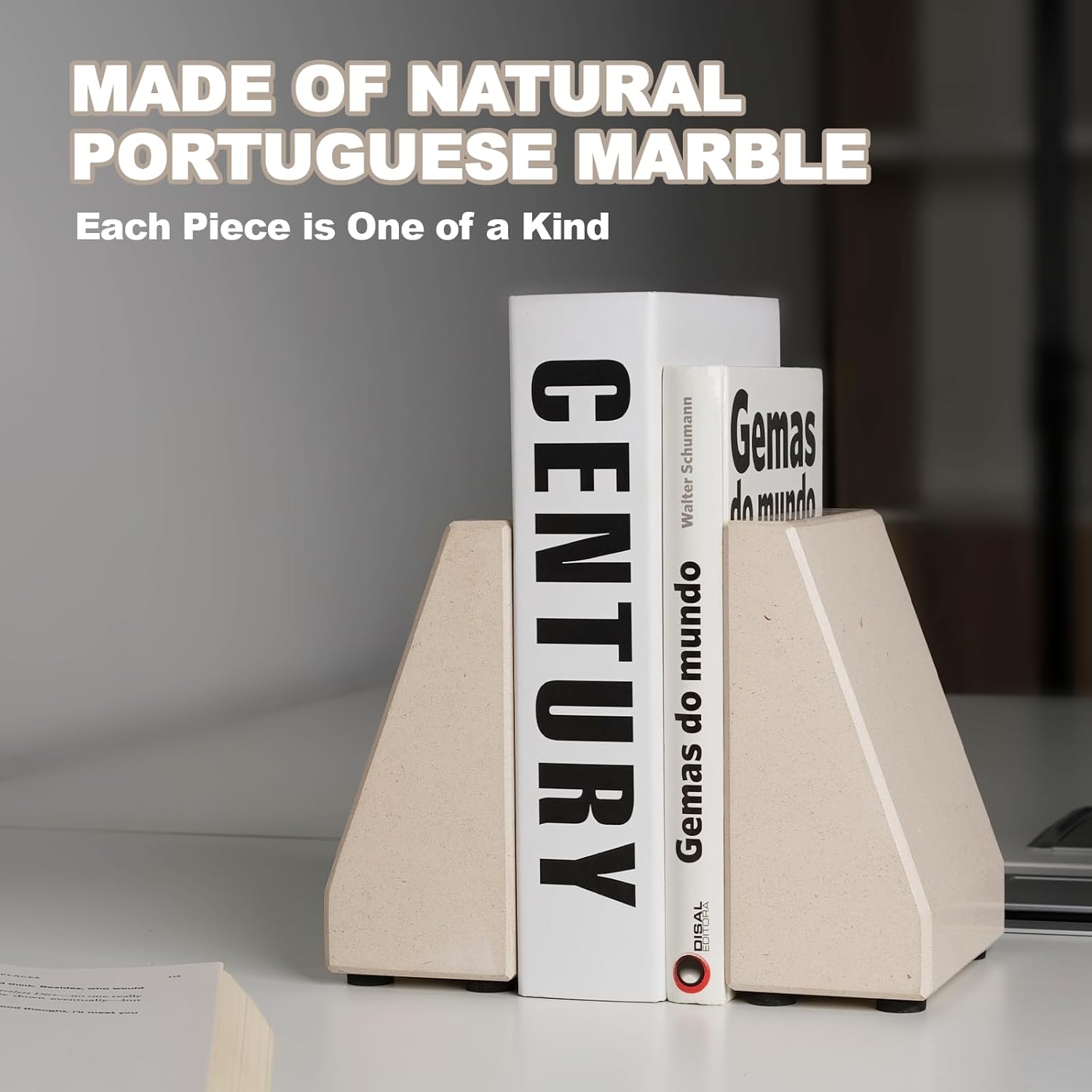 - STRONG AND DURABLE: Made of high-quality marble, karibiber book ends will remain original form after a long time of use. The aesthetic stone bookends for shelves also maintains long-term stability and will not be deformed by external factors, ensuring that your books are always securely placed.