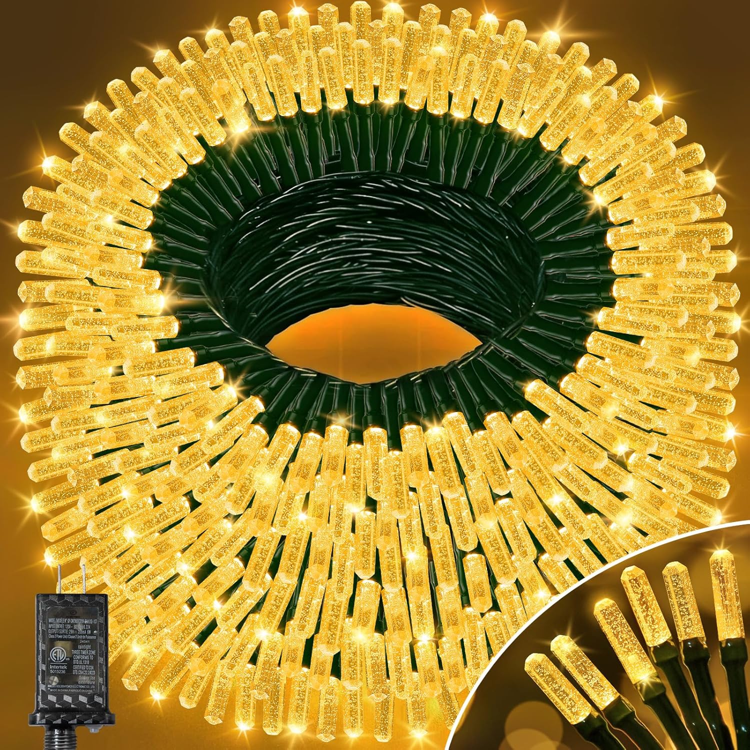 - Unique Design Christmas Lights: Are you looking for a new type and more bright LED Christmas lights? Our Twinkling Christmas tree lights feature a unique six-sided design that can emit light from multiple angles, making it brighter than traditional single-sided light beads. When it lights up, you can see the crystal bubbles inside. The total length is 315 feet 800 LED bulbs and comes with a 9.84-foot leading cord, convenient for you to plug in power