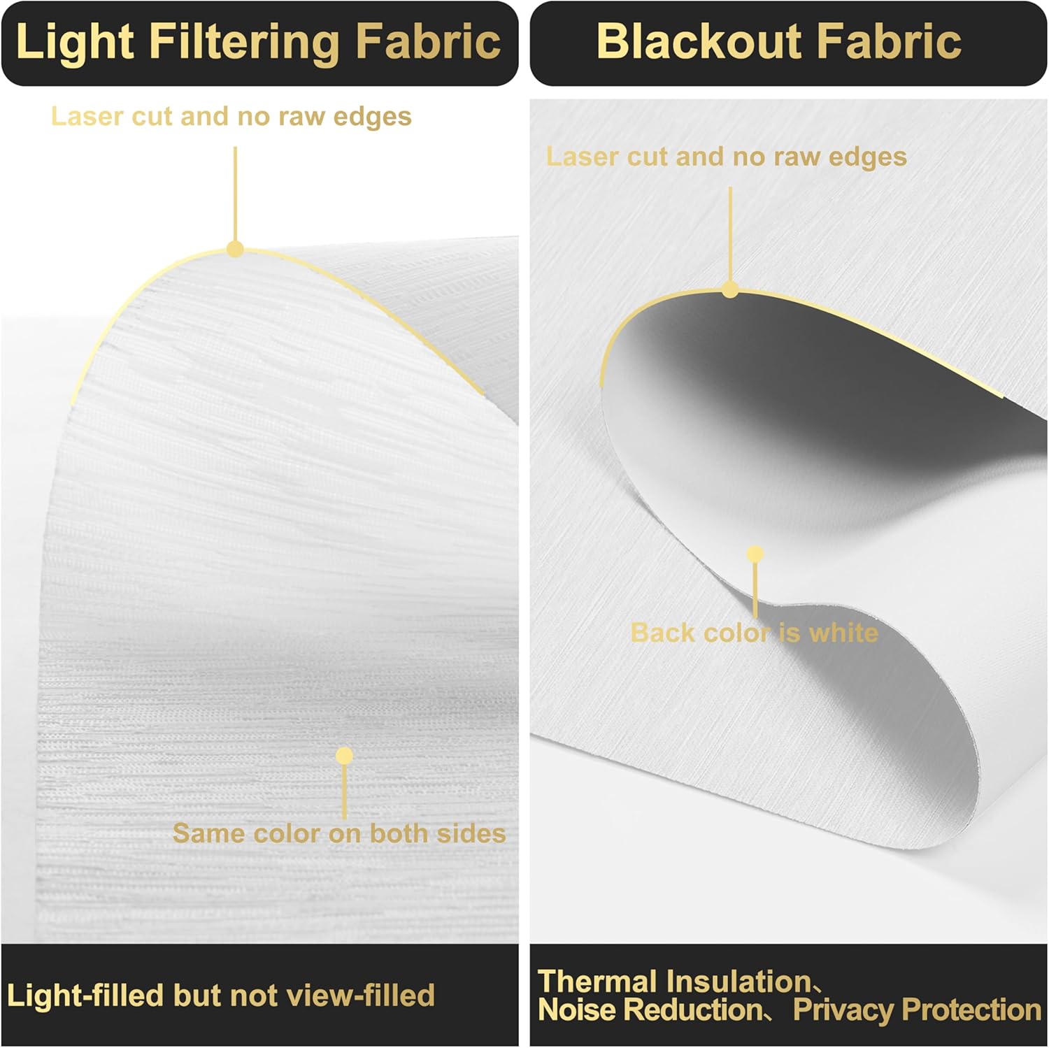 - MULTI-PURPOSE SHADE:Dual roller shades consisting of blackout and light filtering shades, blackout roller shade can 100% blackout,thermal insulation and UV Protection,so that you can experience quiet and comfort of the night during daytime;Light filtering roller shade allow light to filter into your room,and no glare,soft diffused light allow for perfect balance of light and darkness,and also enhances overall aesthetics of your home,allowing for a romantic and comfortable living environment.