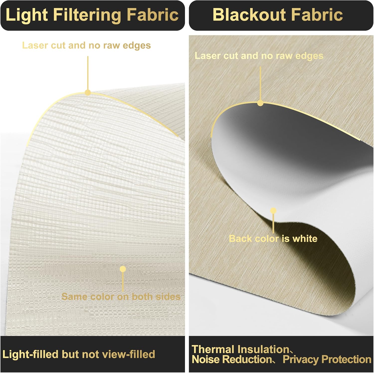 - CUSTOMIZED FABRICS:You can choose the front and back order of blackout fabrics and light filtering fabrics. There are 20 types of blackout fabrics and 7 types of light filtering fabrics, including jacquard fabrics and linen fabrics. You can mix and match according to your personal preference. CUSTOMIZED SIZE:Custom width range 23"-86".Maximum height is 98" (fractional accuracy of 1/8). Customized Size please click the"Customize Size" button in the list to purchase