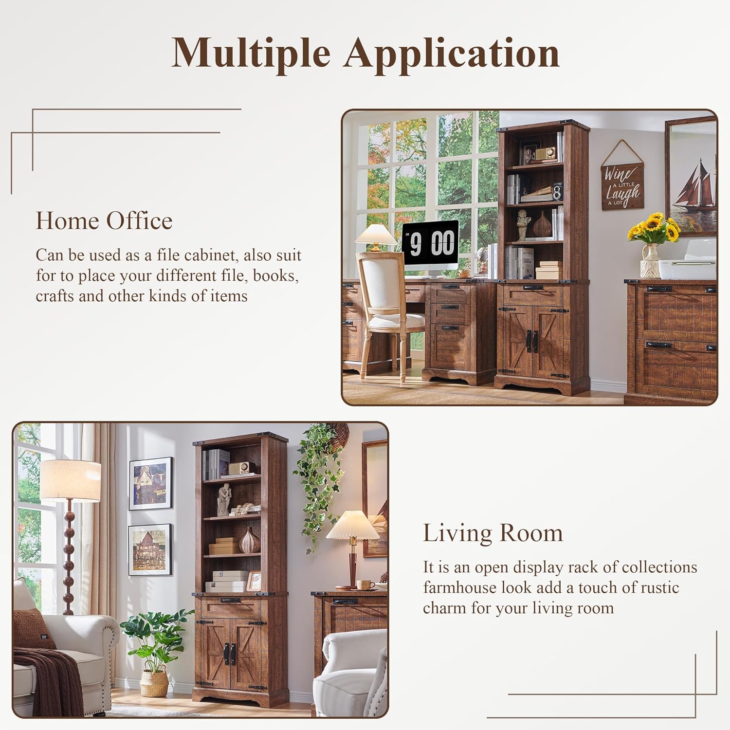 - Multi-Use: Office bookshelf designed like built-in cabinetry with handsome details that make it suitable for various room sizes. Together with functionality, it serves well as a bookshelf, pantry cabinet or display shelf in study room, kitchen and living room.