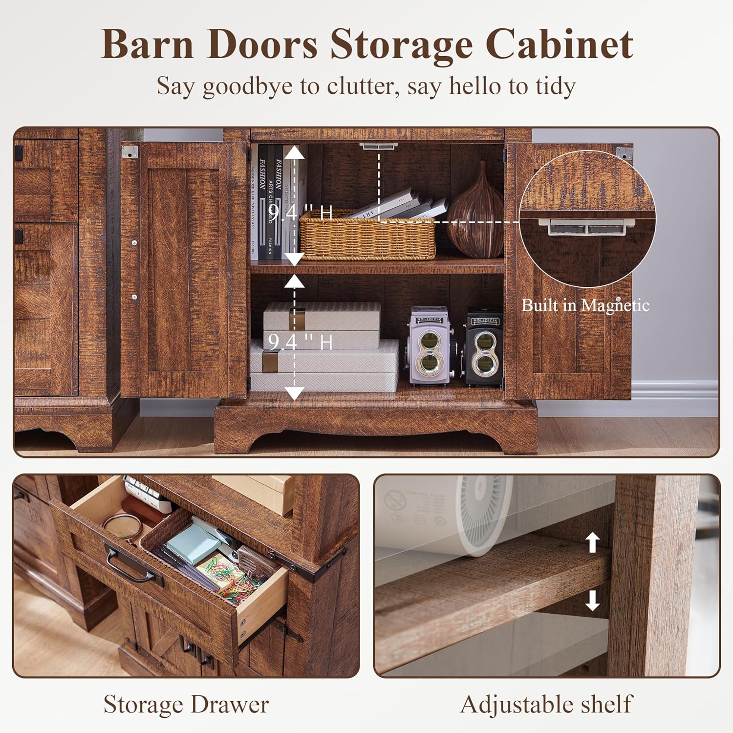 - Special Feature : Adjustable, Barn door, Storage drawer