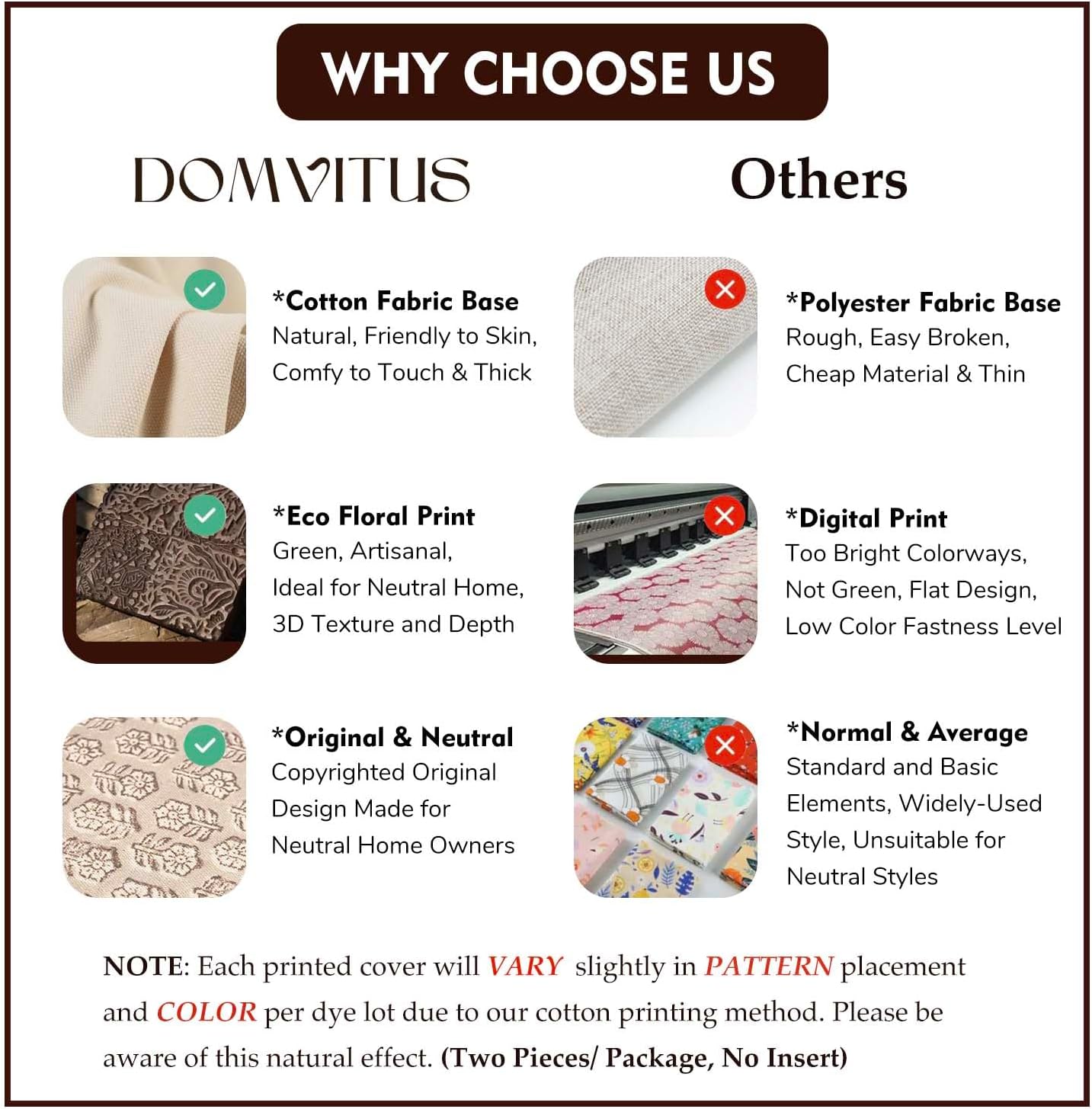 DOMVITUS Floral Pillow Covers Set of 2, 24x24 Pillow Covers, Floral Print Neutral Accent Decorative Pillow Covers for Living Room, Bed, Cognac Brown