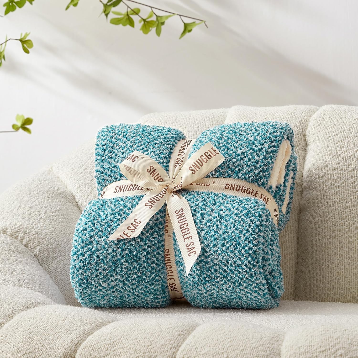 Snuggle Sac Teal Blue Reversible Super Soft Blanket Twin Size for Bed and Sofa, Heather Teal, 60x80 inches