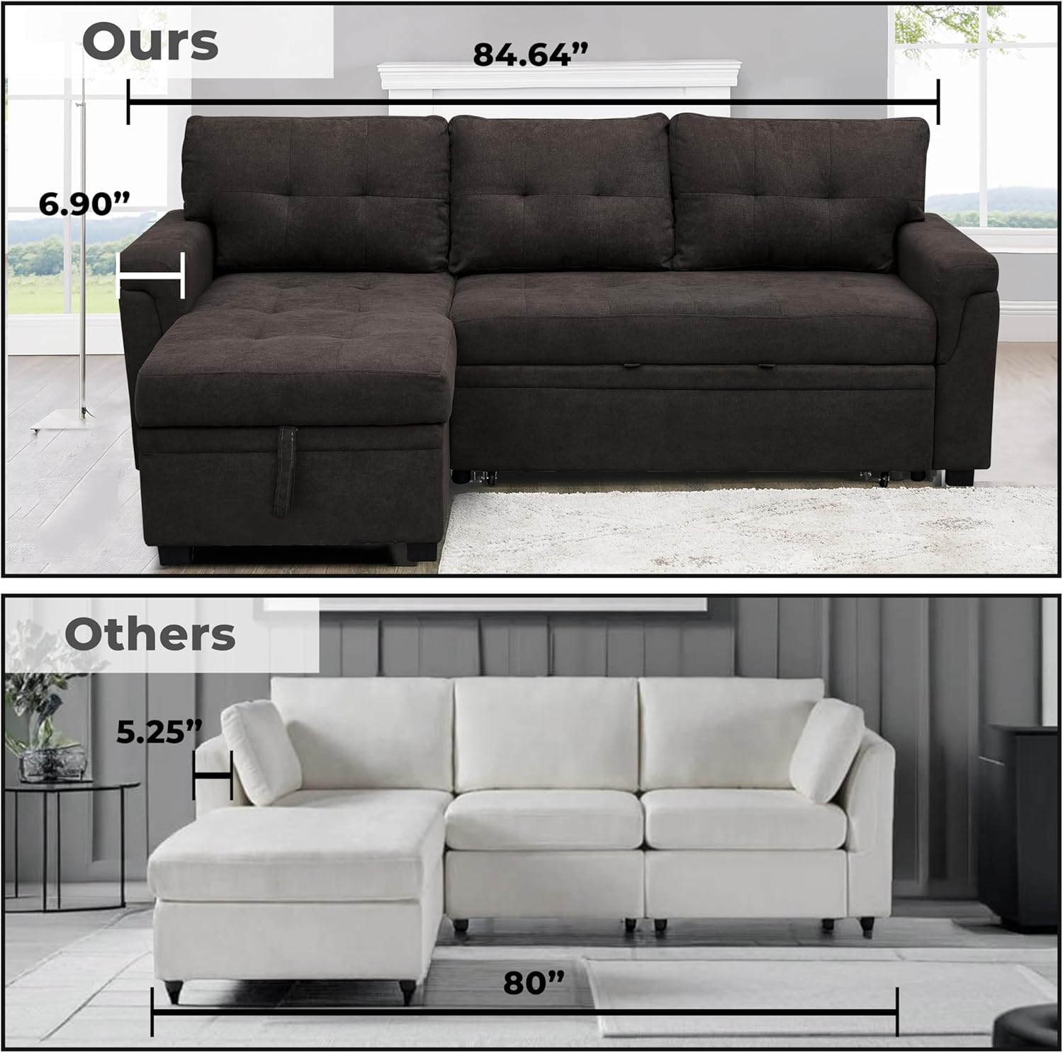 Naomi Home L-Shaped Reversible Sectional Sofa with Pull-Out Sleeper Bed and Storage Chaise, Espresso Velvet