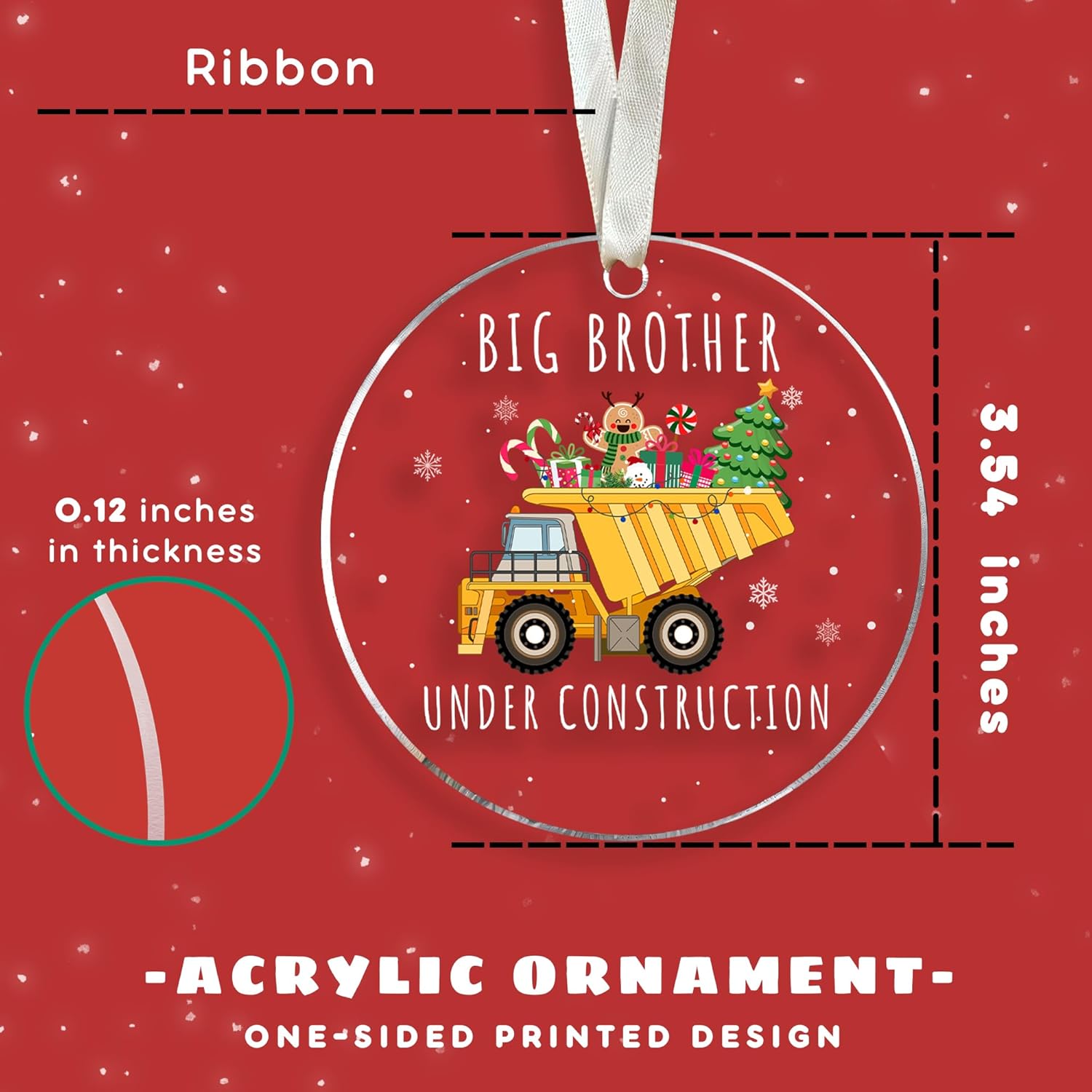 Big Brother Christmas Ornament 2024 - Brother Christmas Ornament - Construction Ornaments - Pregnancy Announcement for Big Brothers, Brothers to Be - Acrylic Ornaments