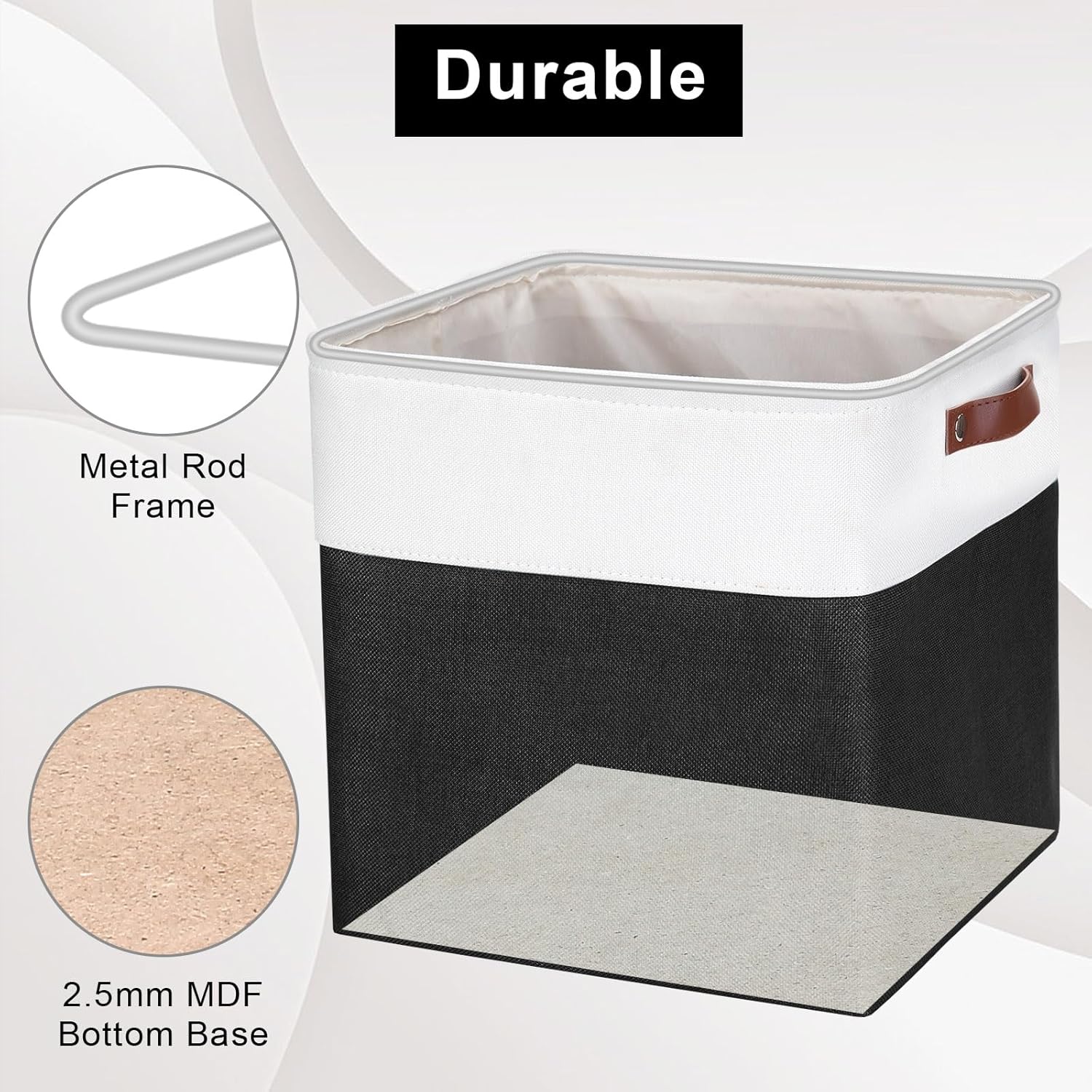 13x13 Cube Storage Bins, Collapsible Fabric Storage Box, 4 Pack Closet Baskets with Handles for Organizing, Shelf, Toys, Clothes, Home, Office, Nursery (Black&White)