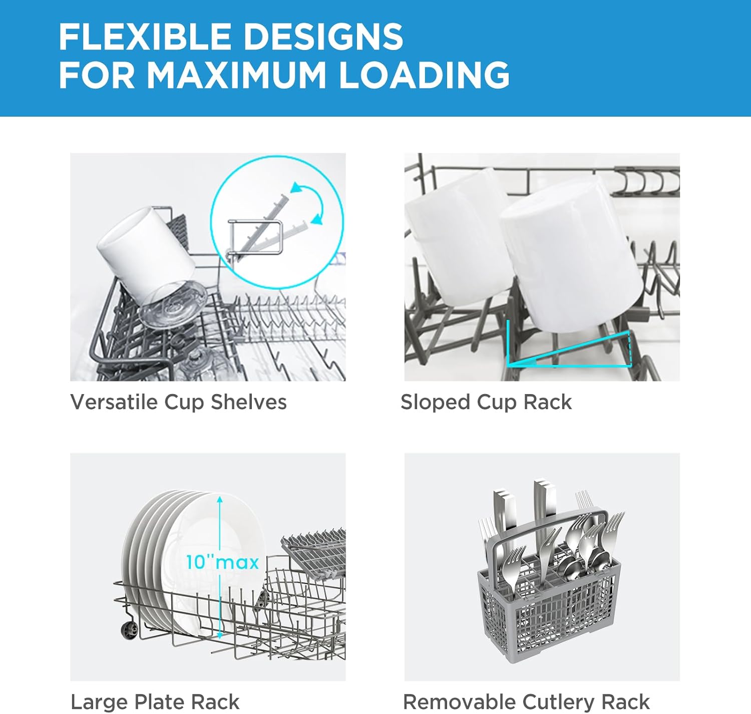 Midea MDC22P2ASS Countertop, Portable Place Settings & 6+2 Washing Cycles. Energy Star Dishwasher, Dish Washer for Dorm, RV& Apartment, Sliver, Silver