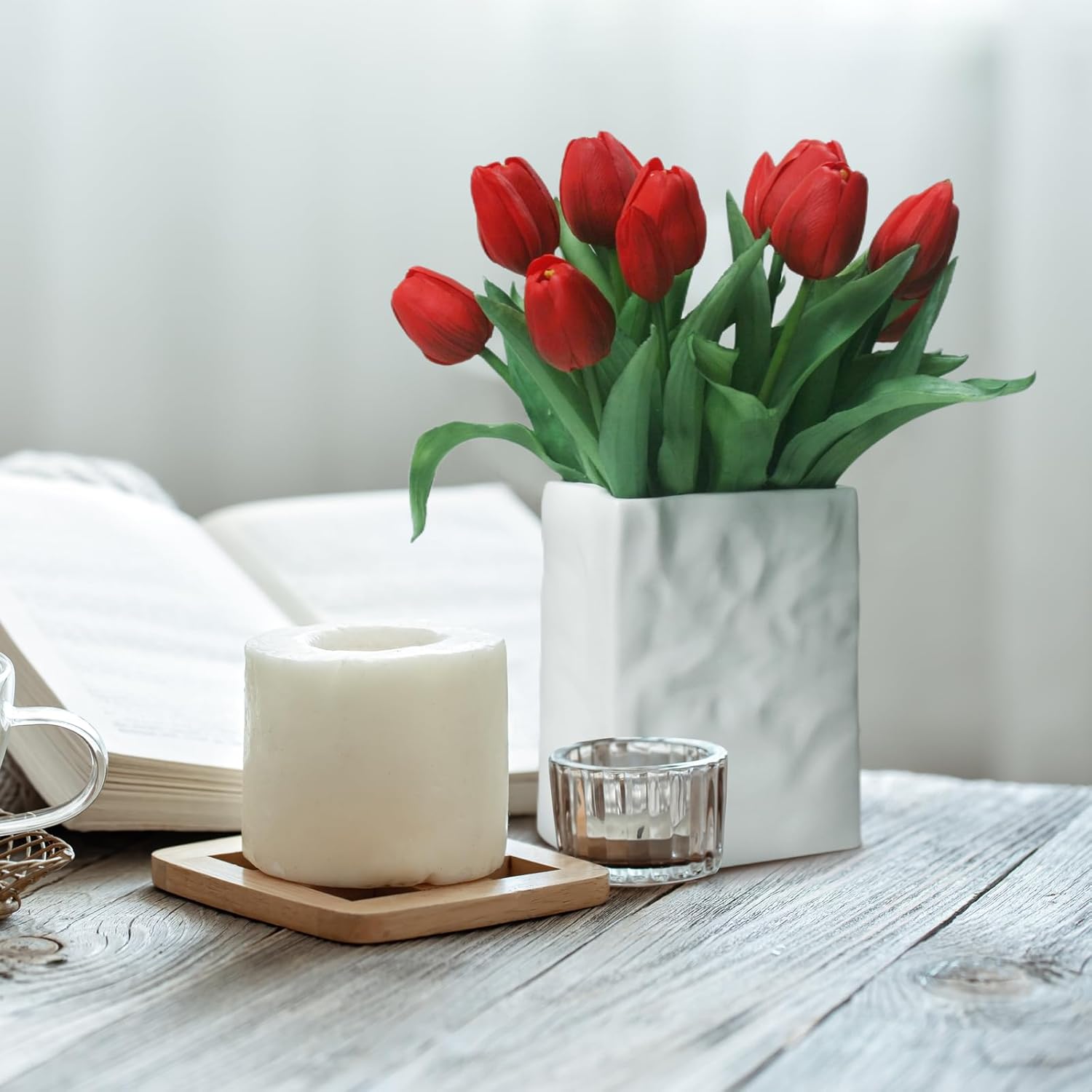 - [No season restrictions]: Artificial tulips that look real have the beauty of real flowers without maintenance or season restrictions. They are a practical and versatile decorative option that, in addition to enhancing your living space, make creative gifts for friends and family.