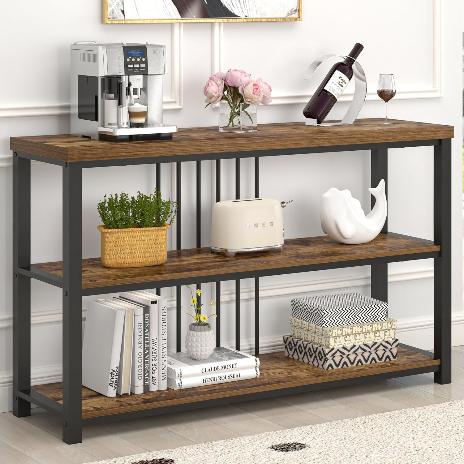 - Versatile: Console tables for entryway, doubling as display, entry way, TV console, behind couch table, foyer, window table, sofa bar table or open storage shelves for living room, office, dining room, bedroom, hallway. Marrying functionality with style