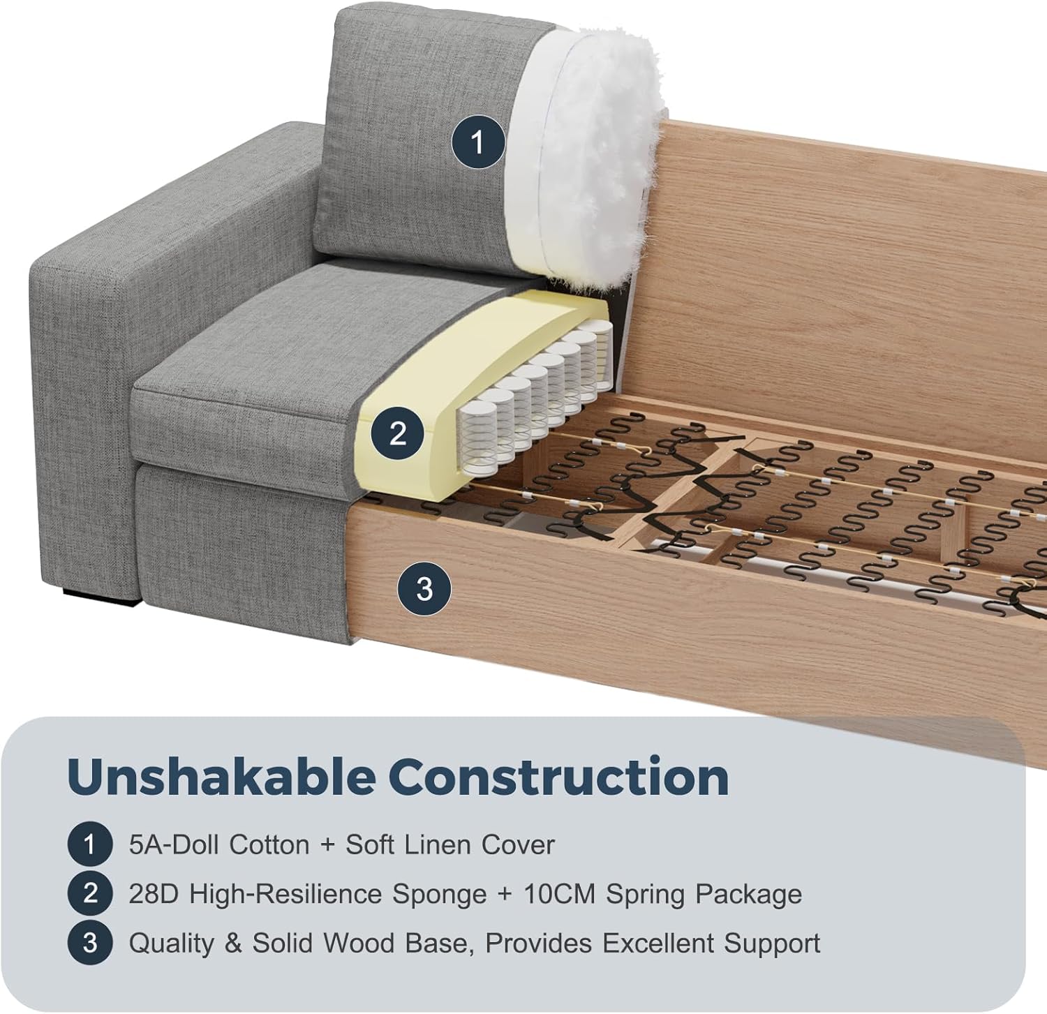 - DETACHABLE SOFA COVER - The sofa sectional combines style with practicality. The seat cushion covers and back pillow covers feature smooth zippers, making them removable and washable for effortless maintenance and ensuring long-lasting freshness.