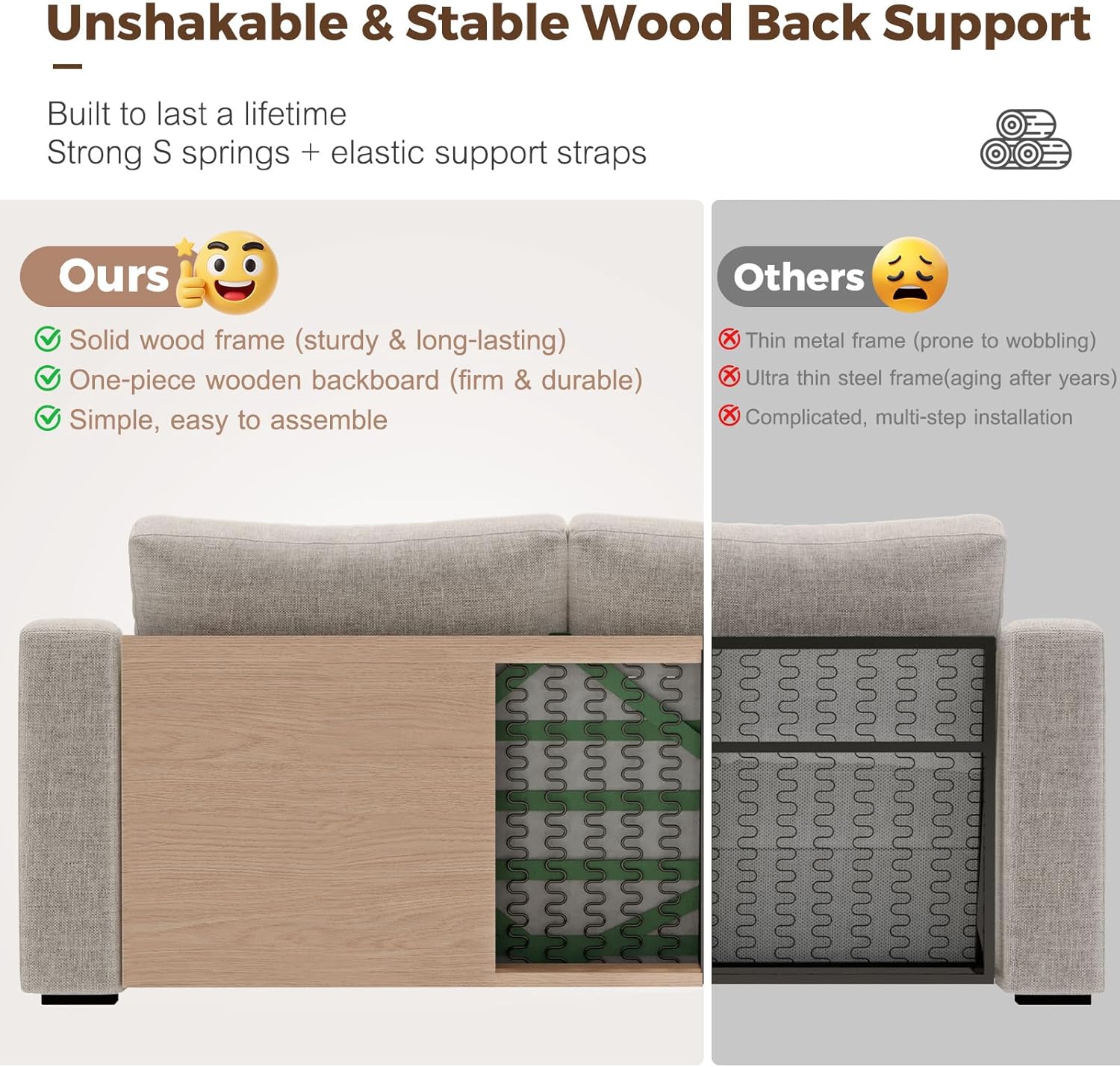 - DETACHABLE SOFA COVER - The sofa sectional combines style with practicality. The seat cushion covers and back pillow covers feature smooth zippers, making them removable and washable for effortless maintenance and ensuring long-lasting freshness.