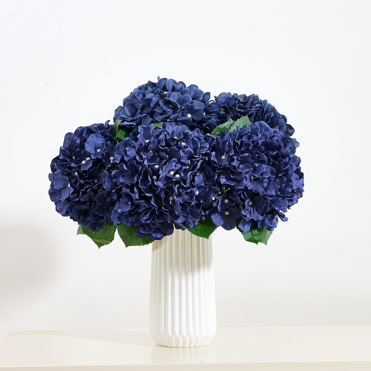 8Pcs Navy Blue Fake Flowers Silk Hydrangea Artificial Flowers Bouquets Faux Hydrangea Stems for Home Table Centerpieces Wedding Party Decoration
