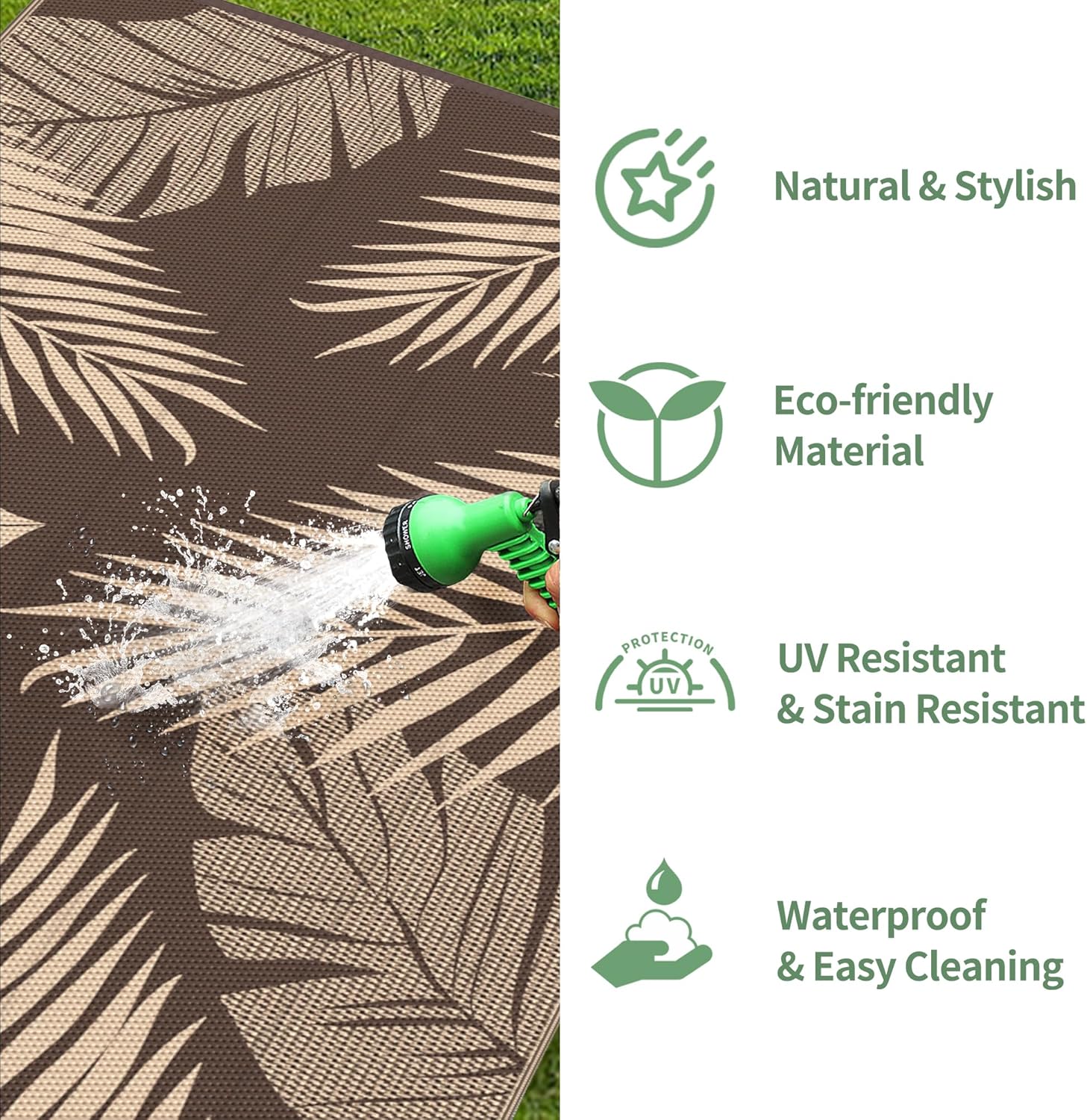 - Palm Leaf Design & Double-Sided Pattern: GENIMO reversible fall outdoor rug is designed with a double-sided pattern, completing the unique layout of multiple palm leaves. The 2 shades of coffee and beige achieve the ultimate fusion. Either side can blend perfectly with nature and look very full and comfortable, making it a versatile piece for fall decor