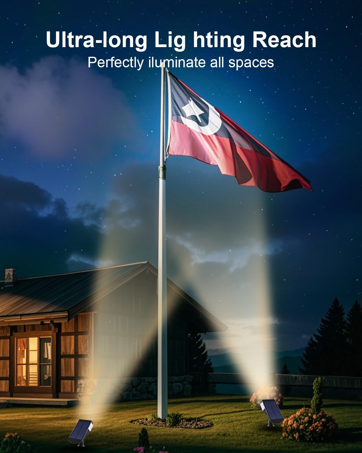 - 💦𝐀𝐝𝐯𝐚𝐧𝐜𝐞𝐝 𝐖𝐚𝐭𝐞𝐫 𝐑𝐞𝐬𝐢𝐬𝐭𝐚𝐧𝐜𝐞, 𝐄𝐧𝐝𝐮𝐫𝐢𝐧𝐠 𝐒𝐭𝐫𝐞𝐧𝐠𝐭𝐡:The solar powered spotlights feature an integrated, exquisite design that outperforms split-type solar lights, especially in harsh weather conditions like storms, showcasing superior waterproof capabilities. Crafted with durable ABS material and equipped with a 2000mAh high-capacity battery, our fixtures provide a long-lasting and reliable lighting experience for your outdoor spaces.