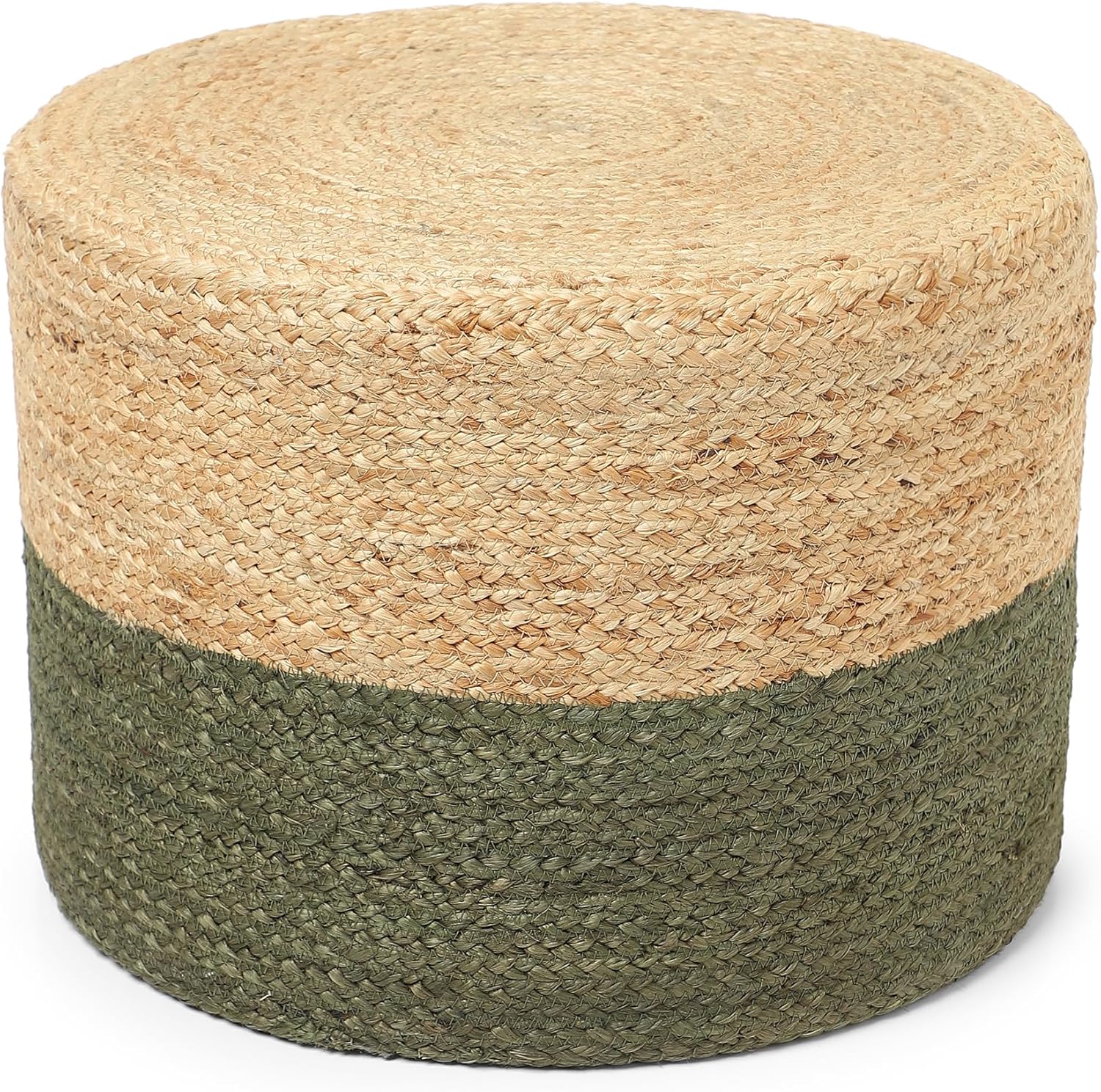REDEARTH · Cylindrical Pouf Foot Stool Ottoman - Jute Braided Pouffe Poof Accent Sitting Footrest for Living Room, Bedroom, Nursery, Patio, Lounge & Other Rooms (Natural Olive, 18"x18"x14")