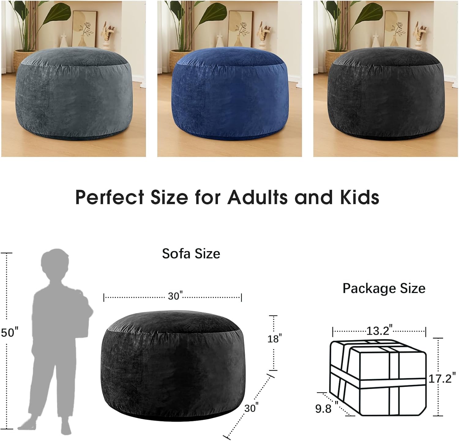 - PERFECT FOR MANY OCCASIONS: 2.5ft bean bag chairs for kids, suitable for any room, you can push it to any place you want, lounge, living room, bedroom, study, basement, and more. It is the best place to lie down and rest when tired.