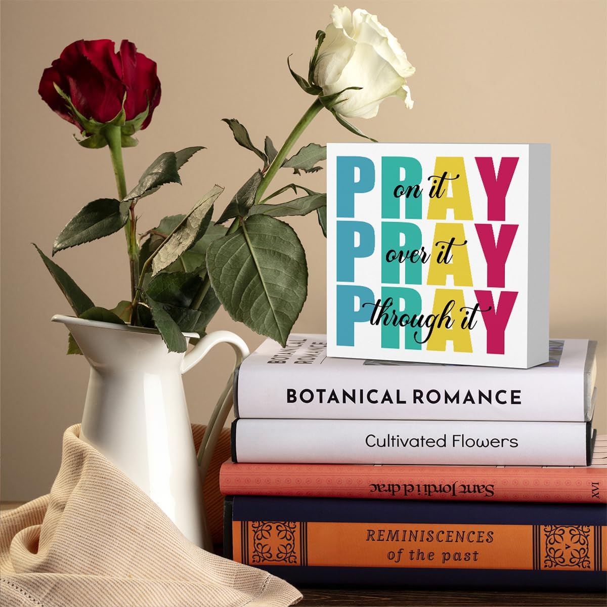 Office Decor for Women Christian Gifts Desk Bedroom Bible Verse Wall Art Inspirational Wooden Box - Pray on It Over It Through It