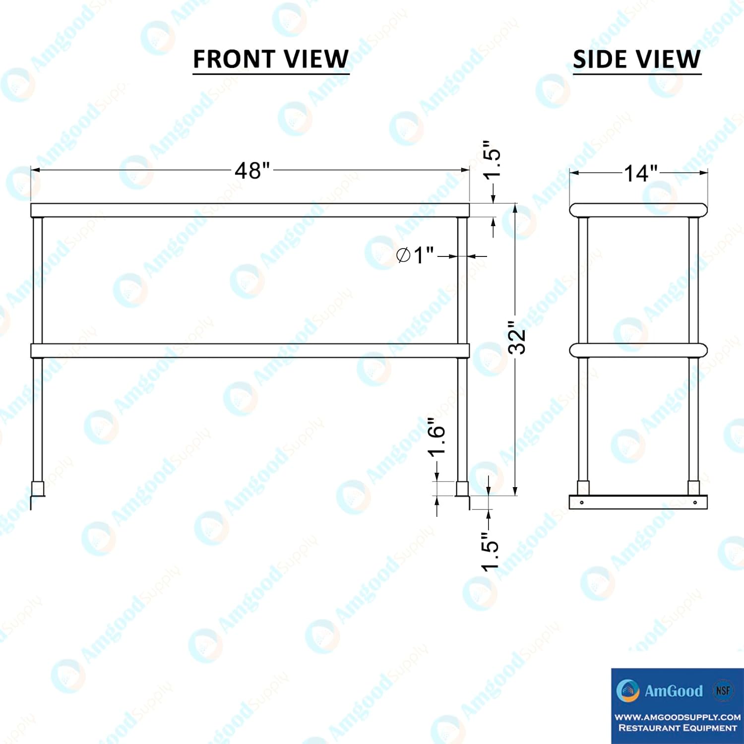 - 14 in. x 48 in. x 32 in. double-tier overshelf. Each tier holds up to 275 Lbs, providing robust support for heavy kitchen essentials.