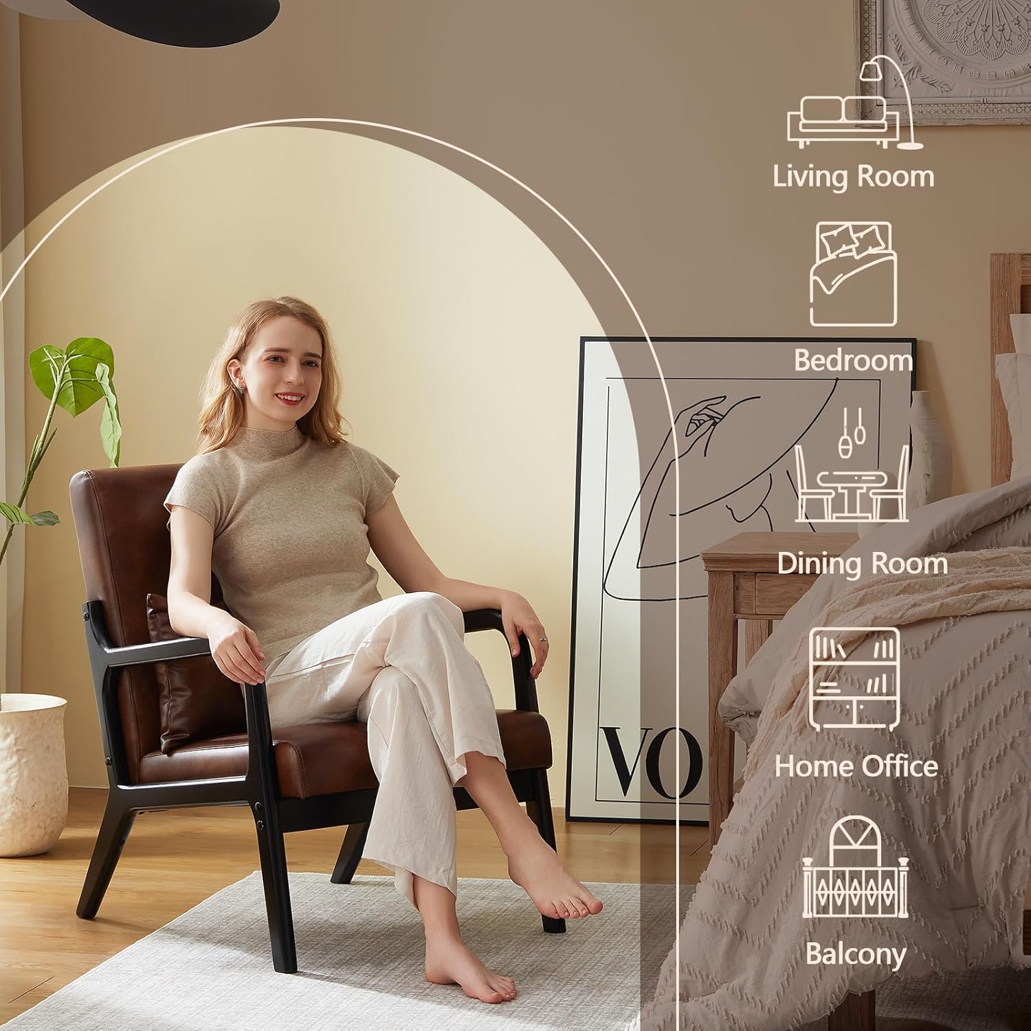 - Mid-century Modern Style:The Mid Century Modern Chair combines durability with ultimate comfort, making it the perfect addition to any room. Wrapped in water-resistant PU leather and supported by sturdy rubber wood legs, this chair is both stylish and easy to maintain