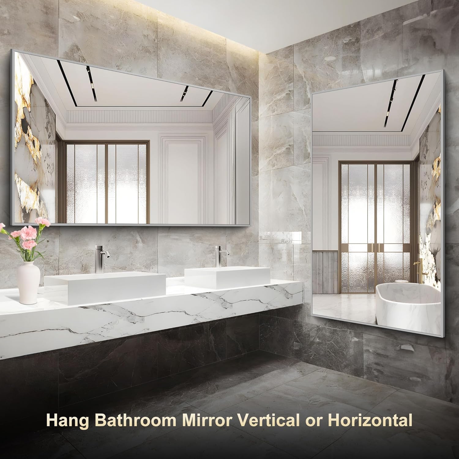 - HORIZONTAL OR VERTICAL HANGING: More mounted keyholes allow for horizontal or vertical hanging; bathroom mirror comes with nails, you can quickly complete the installation with the help of a drill and a screwdriver (no included)