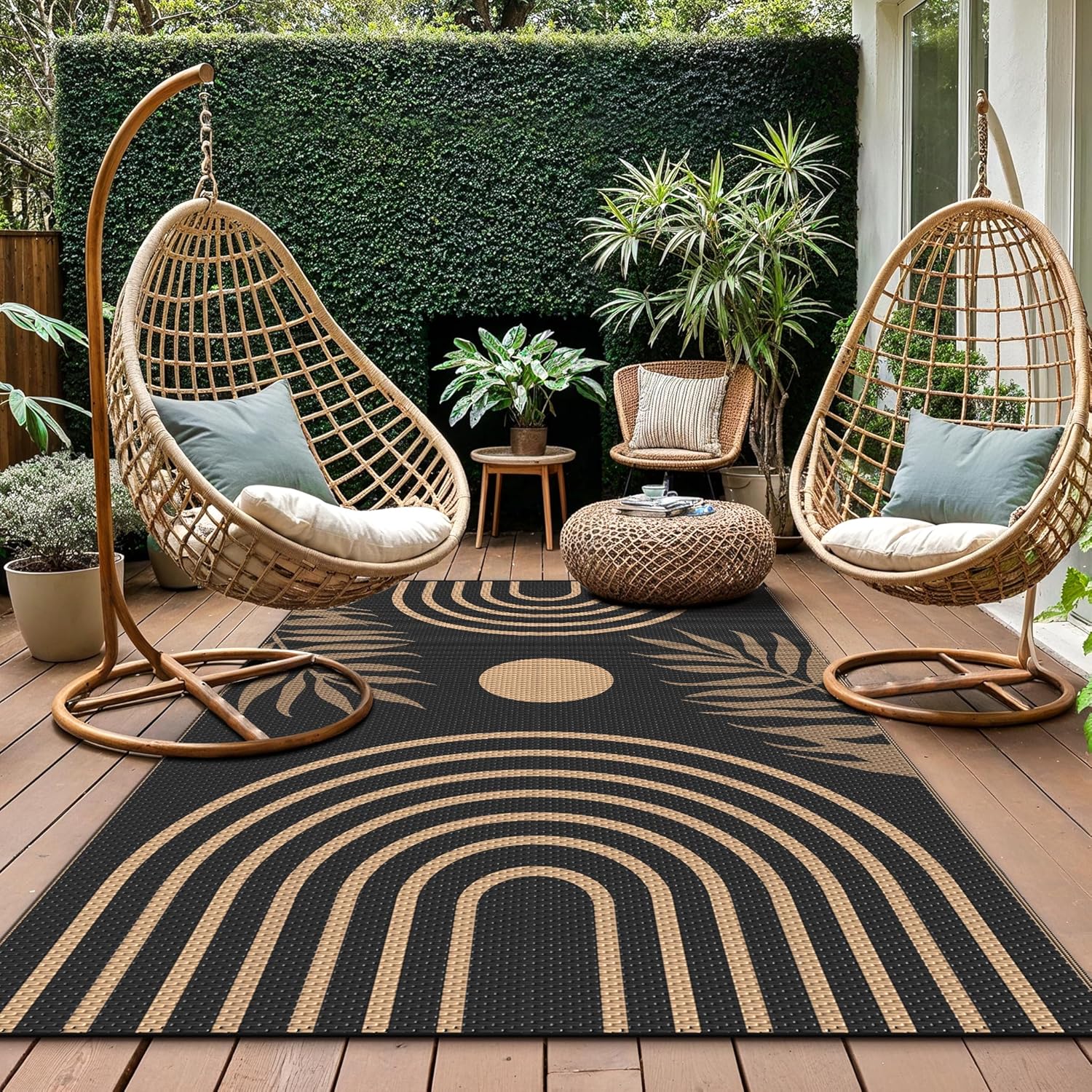 - Wide Use: This outside waterproof mat can be widely used under furniture sets on outdoor patios, for outdoor camping, rv, porch, balcony, pool deck, and picnic. Meanwhile, we offer a variety of sizes for you to choose (4'x6'、5'x8'、6'x9'、8'x10'、9'x12')