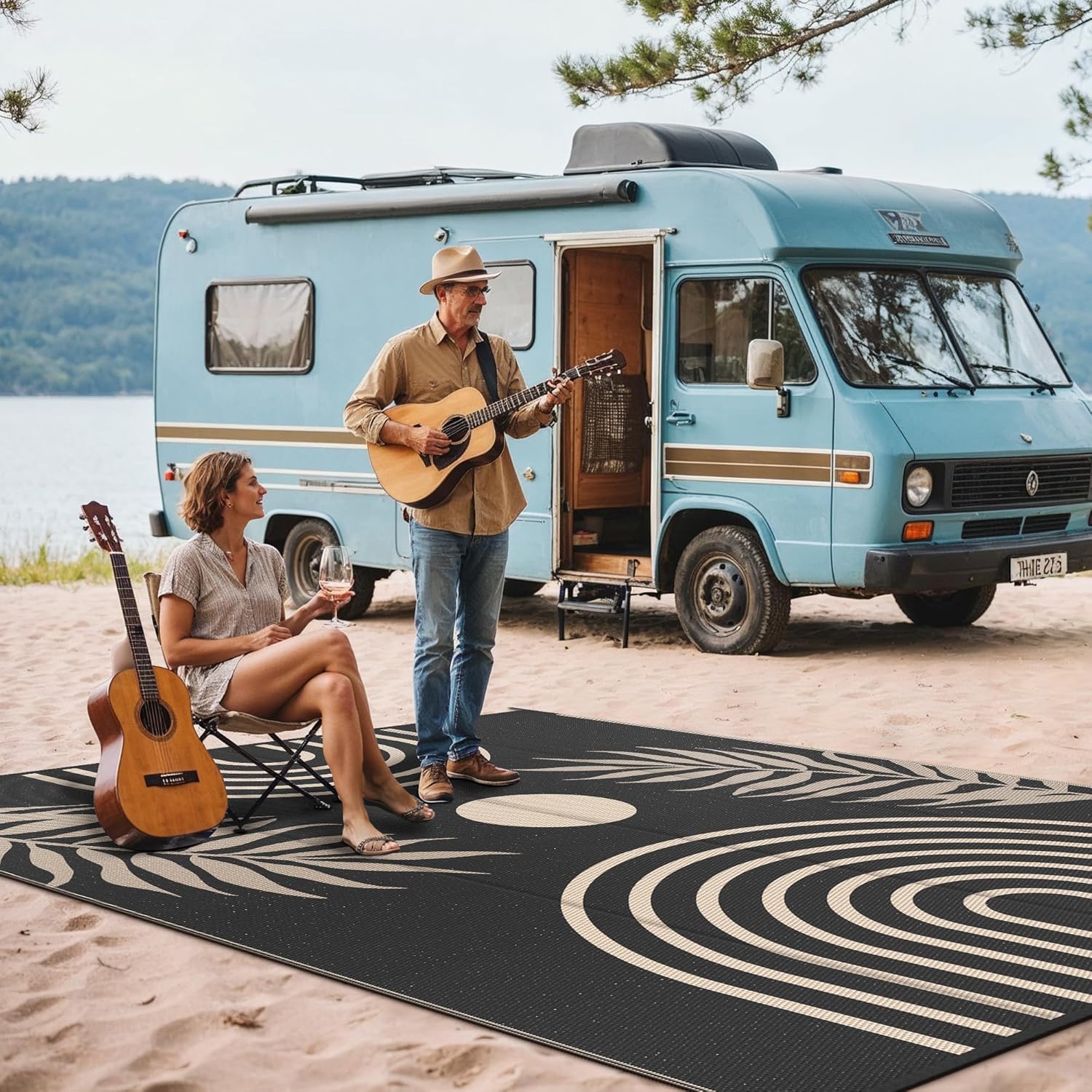 - Wide Use: This outside waterproof mat can be widely used under furniture sets on outdoor patios, for outdoor camping, rv, porch, balcony, pool deck, and picnic. Meanwhile, we offer a variety of sizes for you to choose (4'x6'、5'x8'、6'x9'、8'x10'、9'x12')